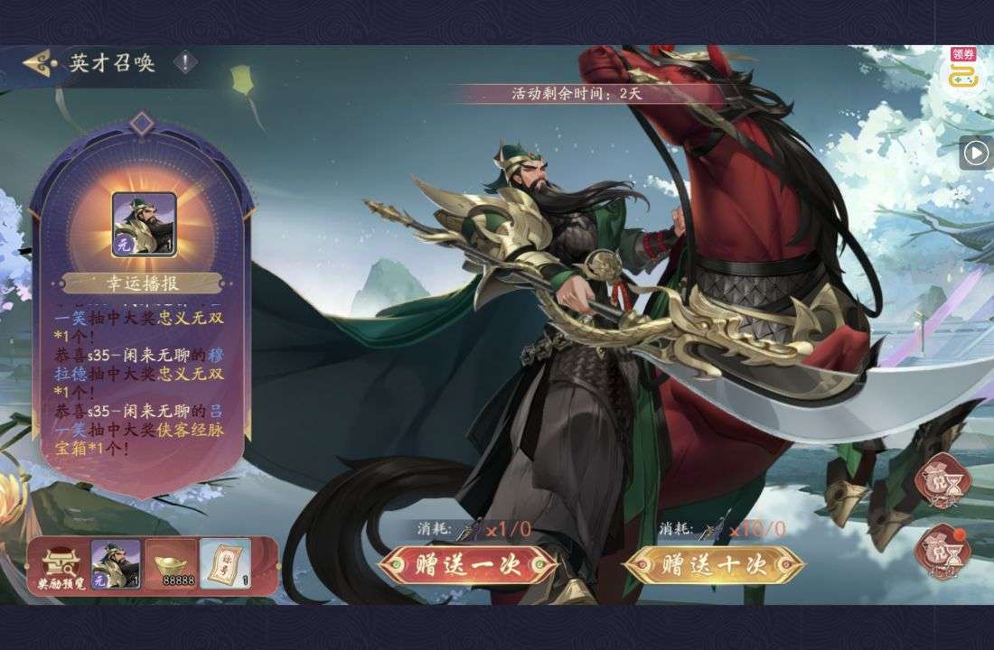 普通招募券*20、进阶凭证*100、战斗技巧*100000、金币*100000(每个账号限领一次)