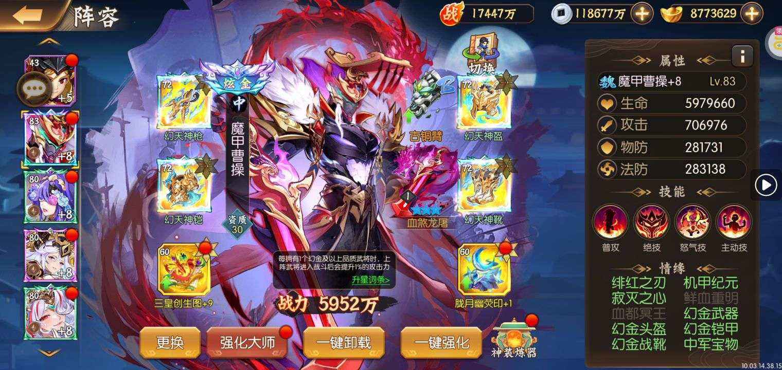 v22 已过新手,剩千抽,炫金/紫金/幻金;炫金曹操,幻金小乔一星,紫金3只,暗金券700多,紫金天金券可以自己置换,元宝910000