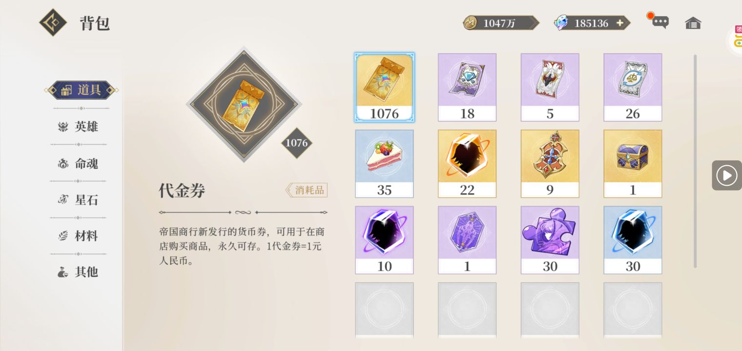 一堆圣晶石6小时*1、募魂令*10、暗淡原石*40(每个账号限领一次)