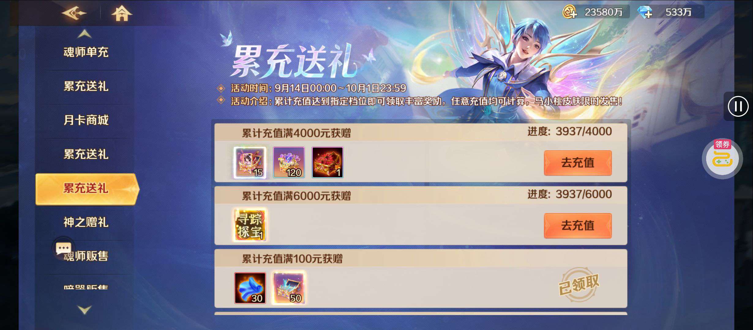 金鱼*588、占星罗盘*5、锻造石*388(每个账号限领一次)