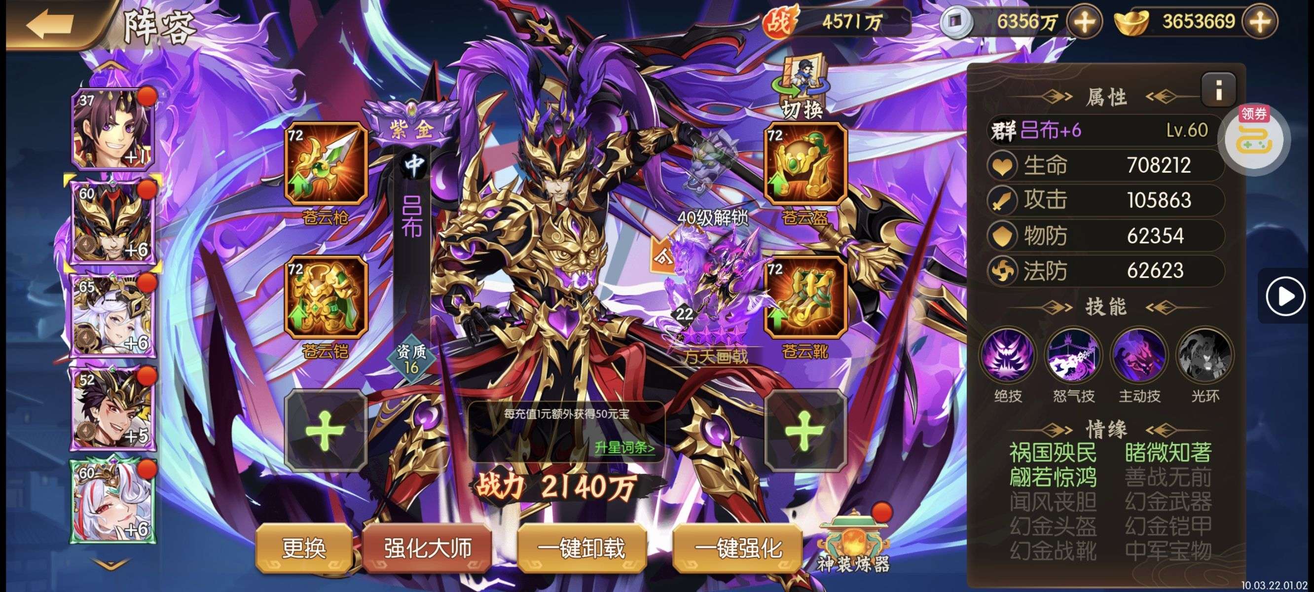 v22 已过新手,剩千抽,炫金/紫金/幻金;炫金曹操,幻金小乔一星,紫金3只,暗金券700多,紫金天金券可以自己置换,元宝910000