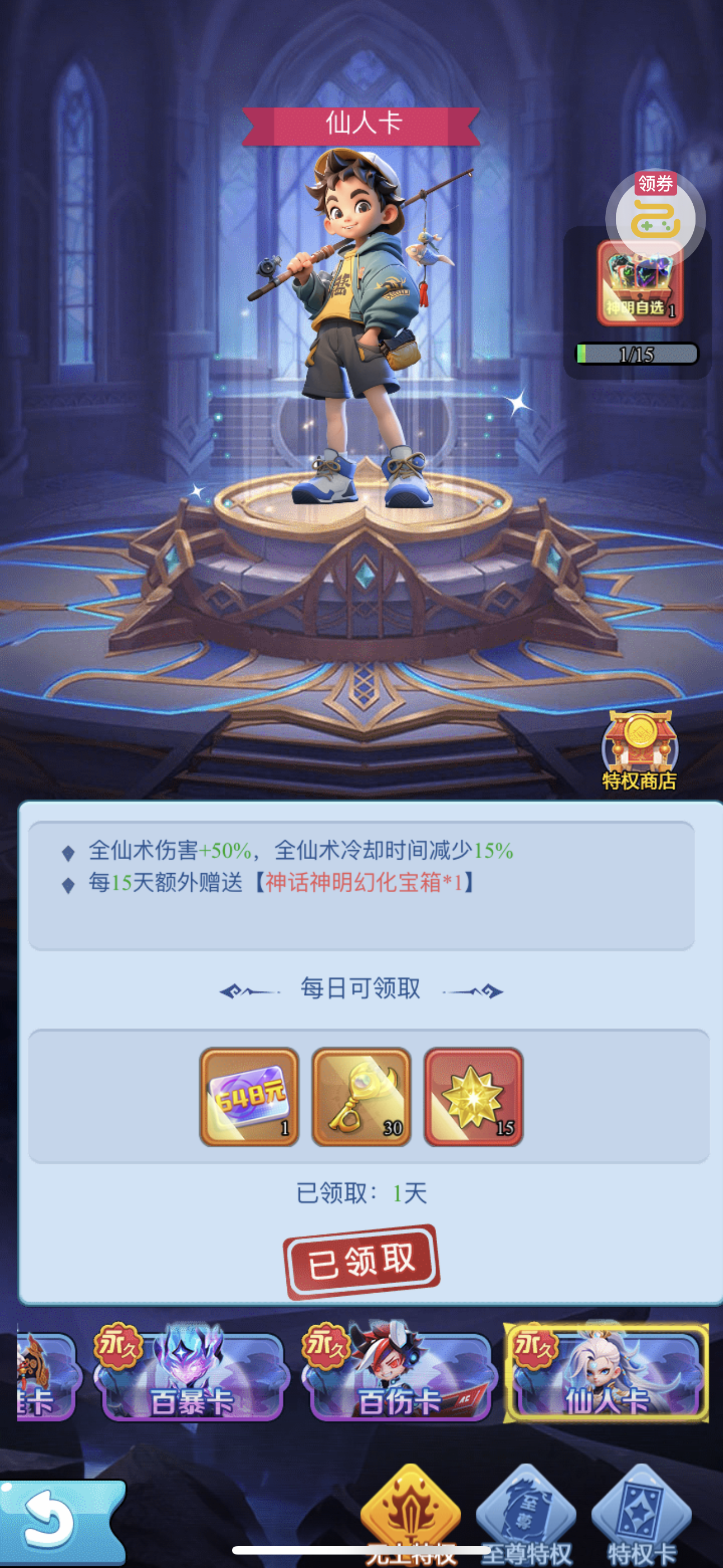 首充特权卡都开了,背包里还有时装自选和充值劵