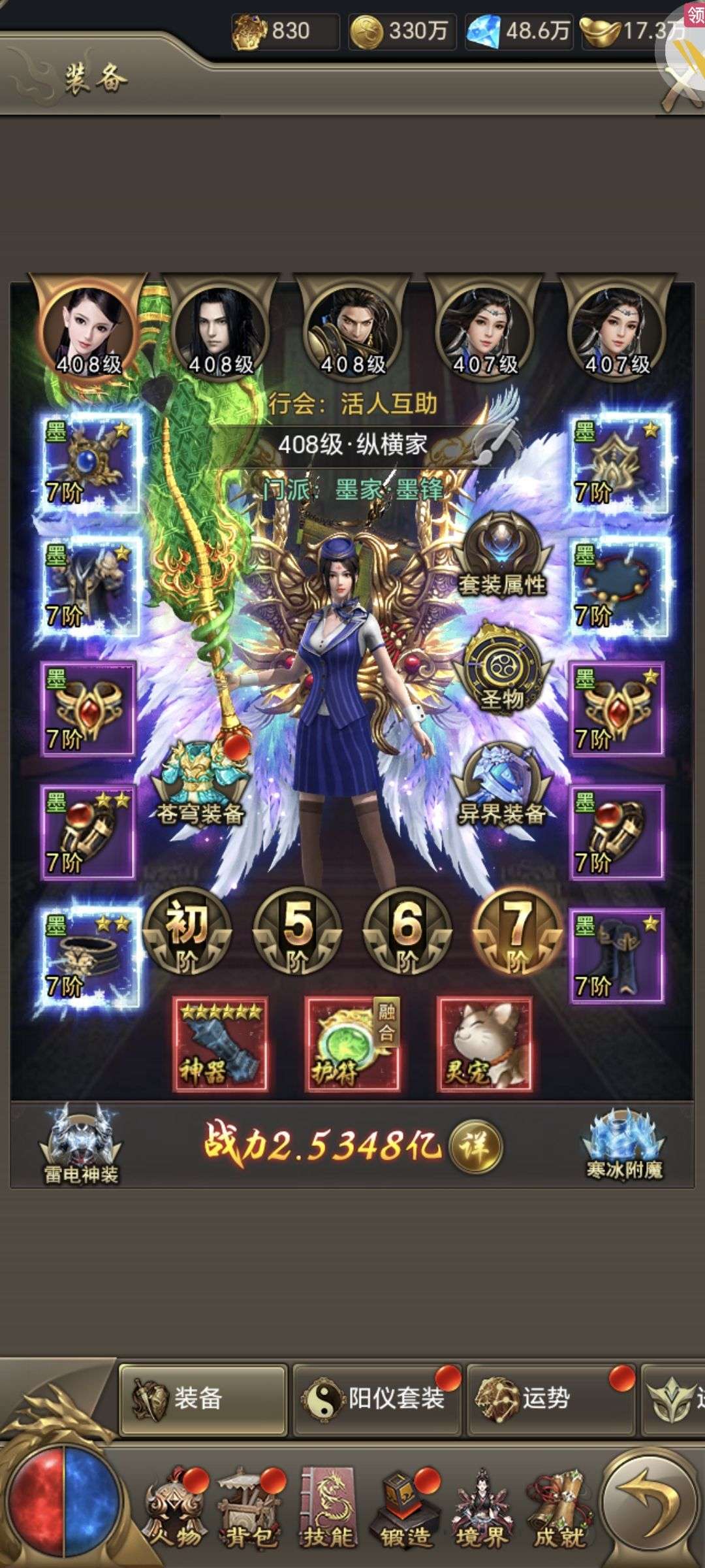 442级,有全套雷电神装和两套寒冰套装,多个绝版坐骑