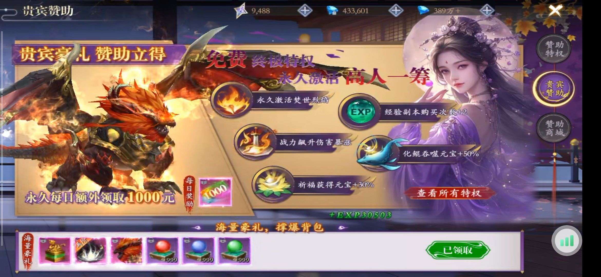 元宝*1888,悟性丹*30,太极之心*30,4级攻击宝石*1(每个账号限领一次)
