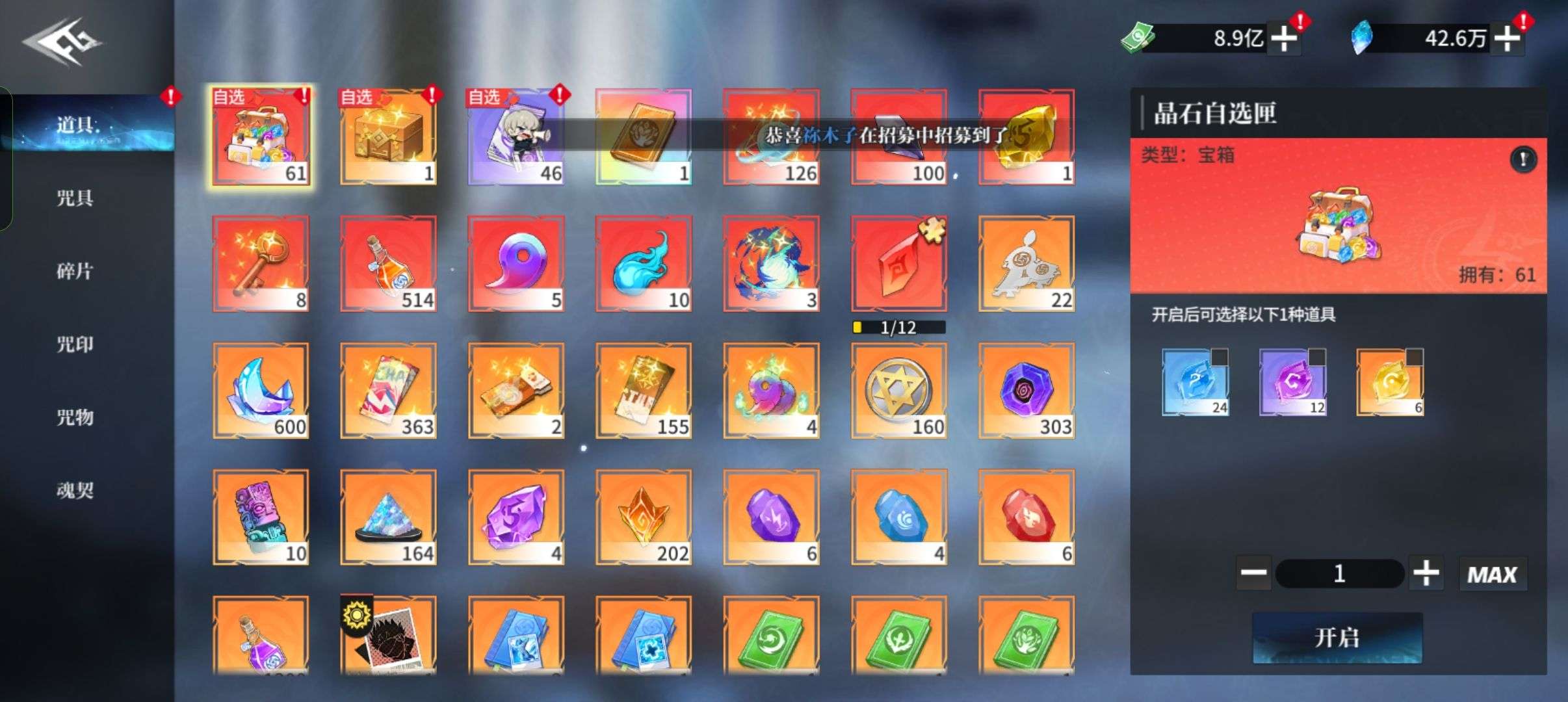一堆圣晶石6小时*1、募魂令*10、暗淡原石*40(每个账号限领一次)