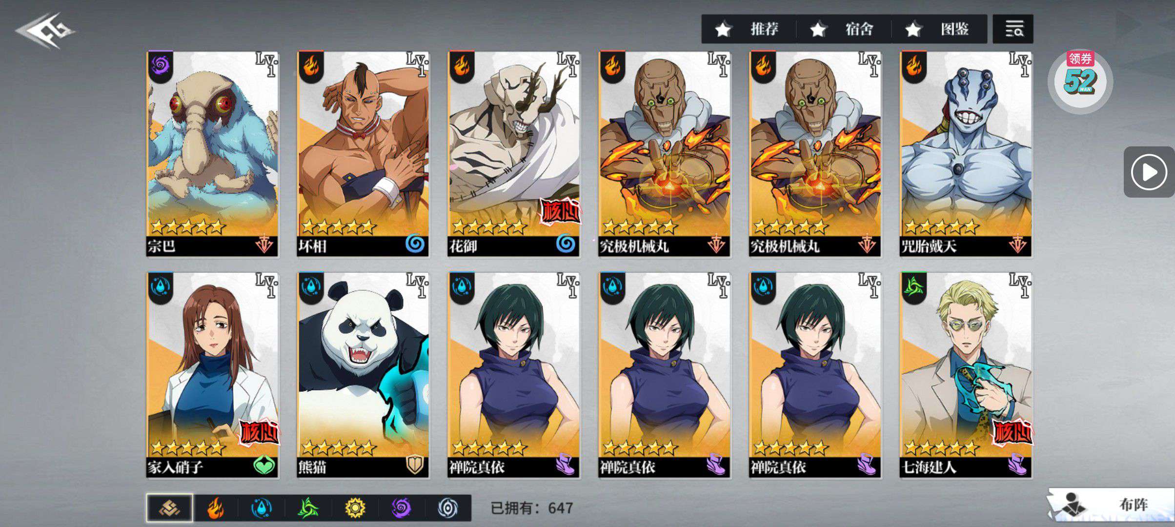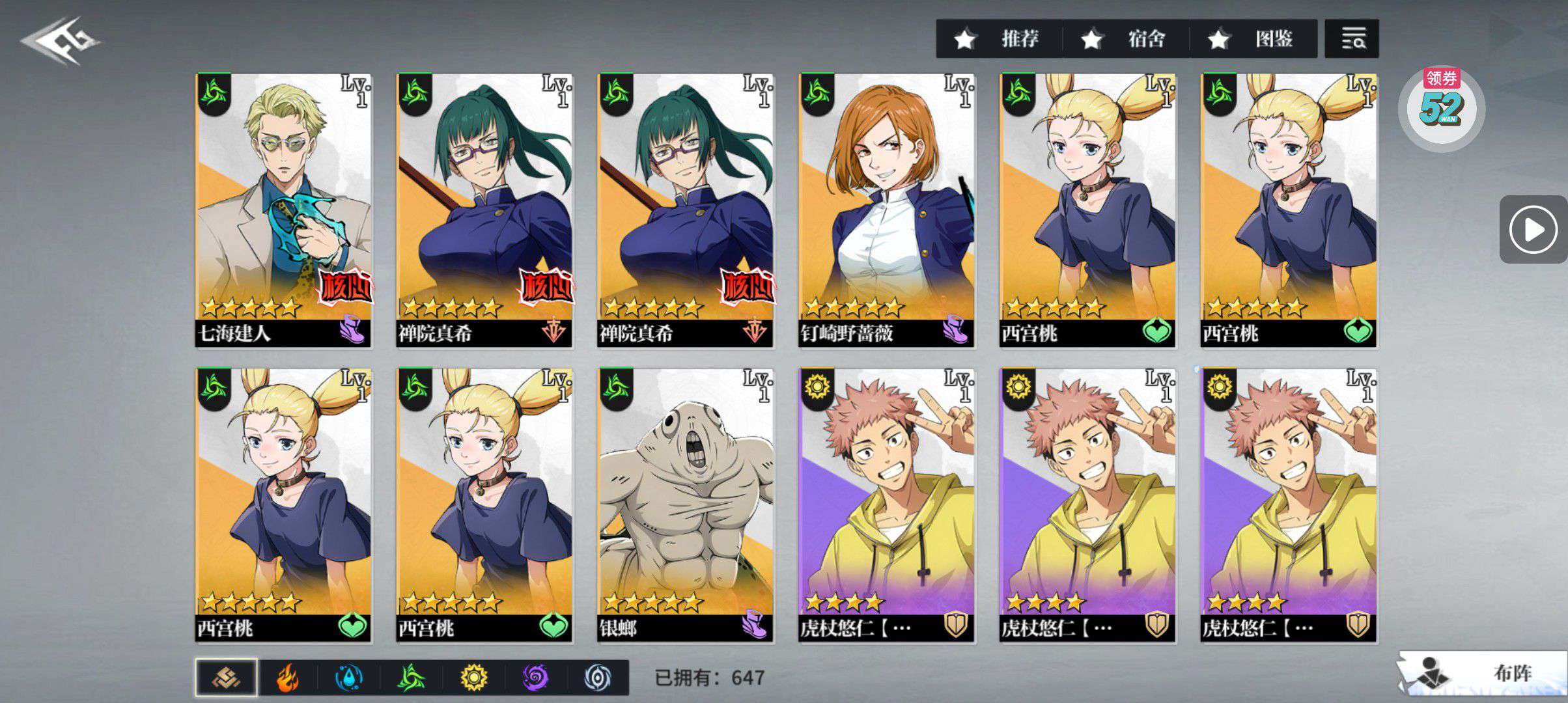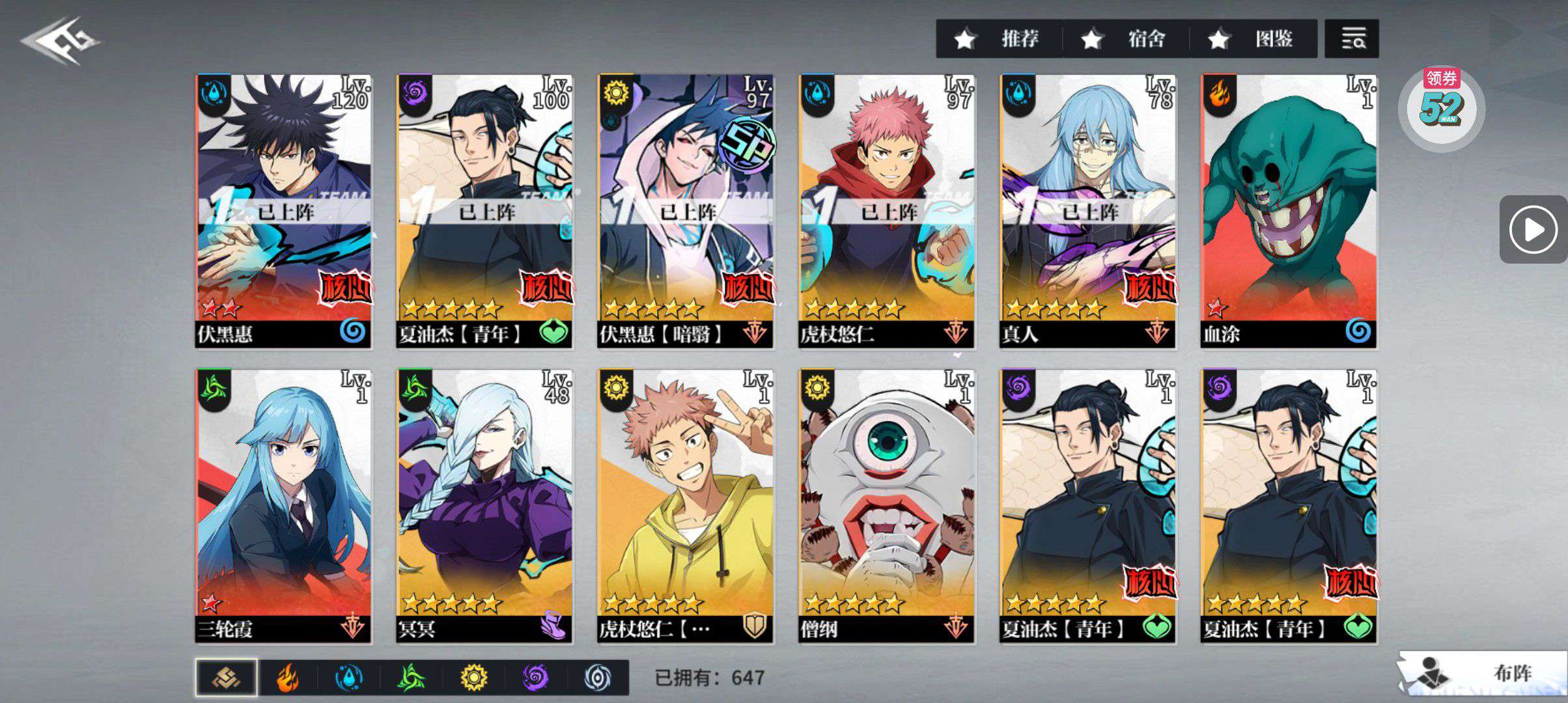 有97级的sp伏黑惠,120级的伏黑惠,97级的夏油杰