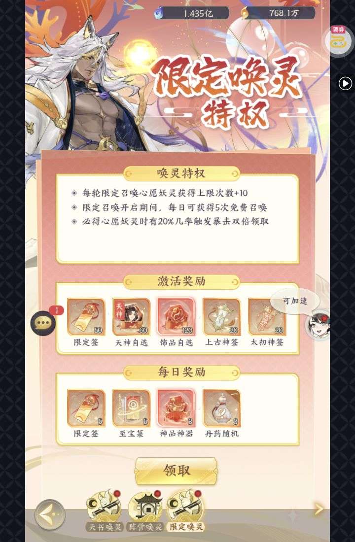 一堆圣晶石6小时*1、募魂令*10、暗淡原石*40(每个账号限领一次)