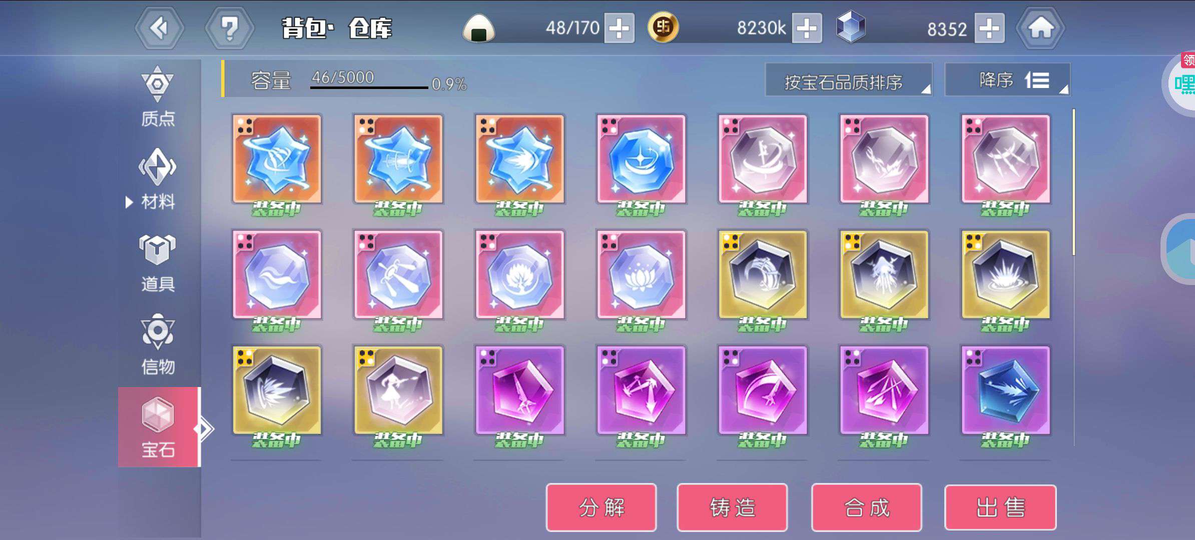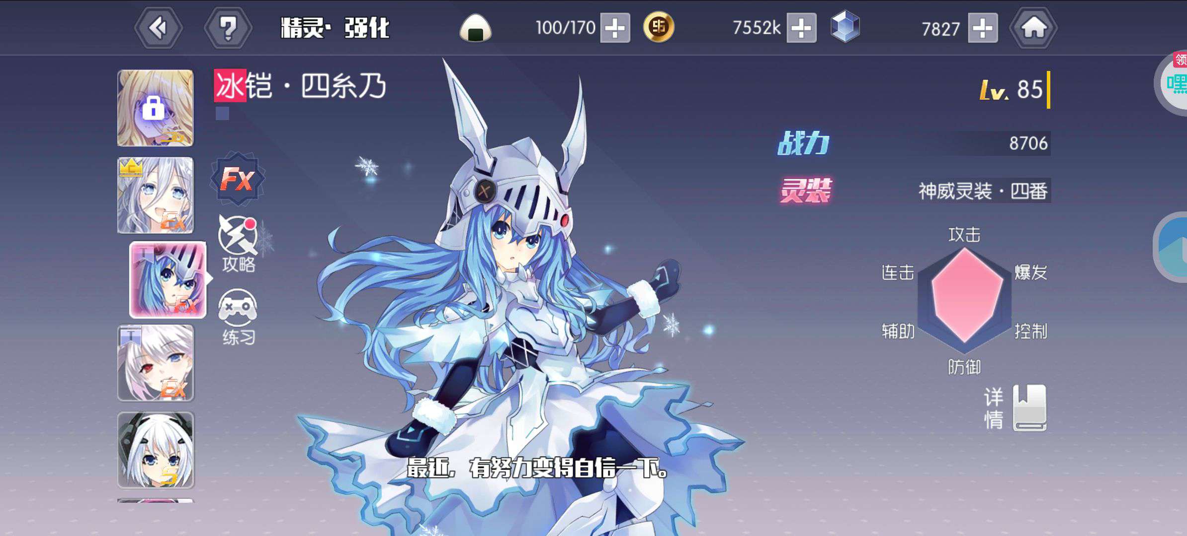 等級88等,寶石S級有5個,目前有練白之女王、澪、園神凜祢,有買造型至少有三個以上