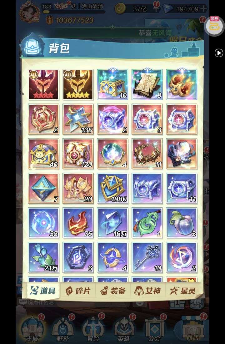 一堆圣晶石6小时*1、募魂令*10、暗淡原石*40(每个账号限领一次)