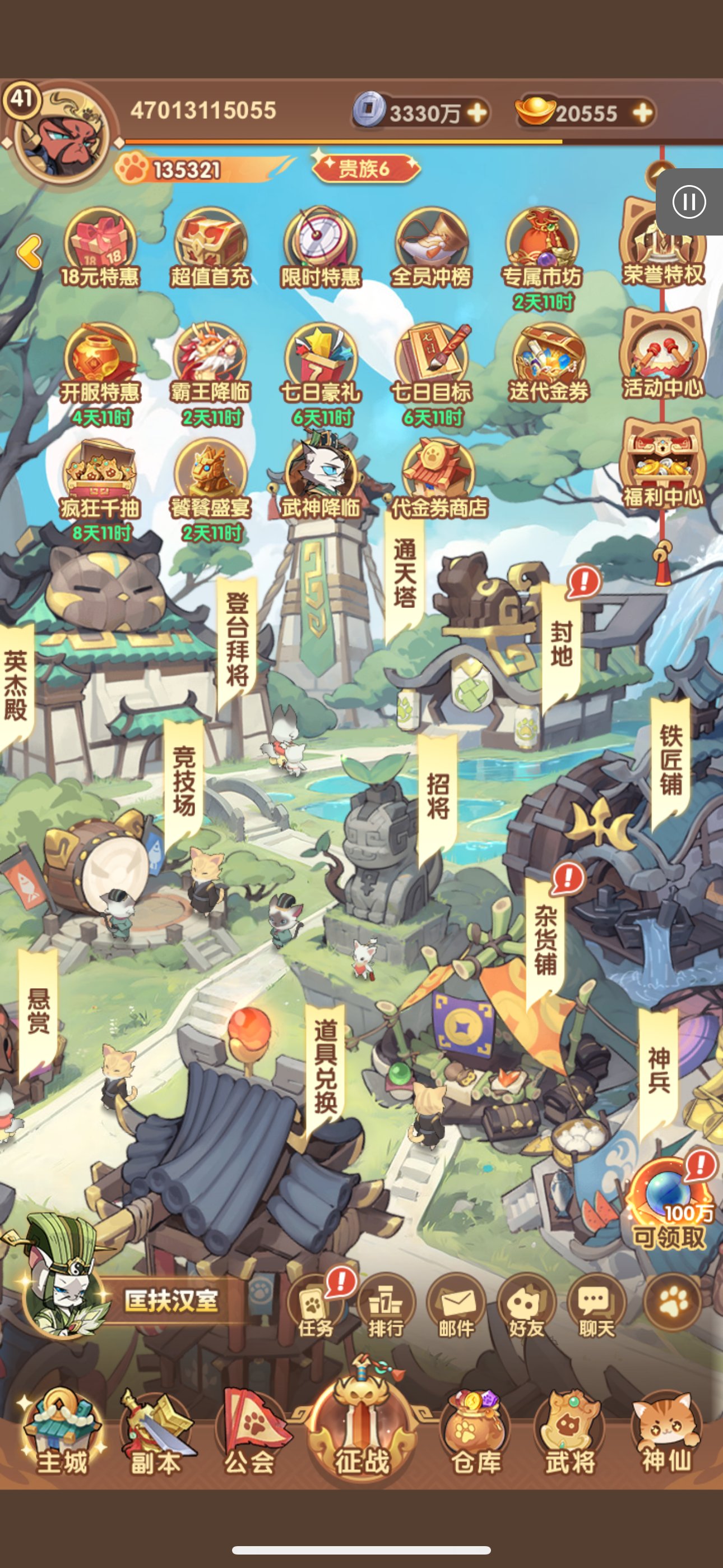 国庆活动实充5000,准备玩新区去了,仓库还剩43万猫币