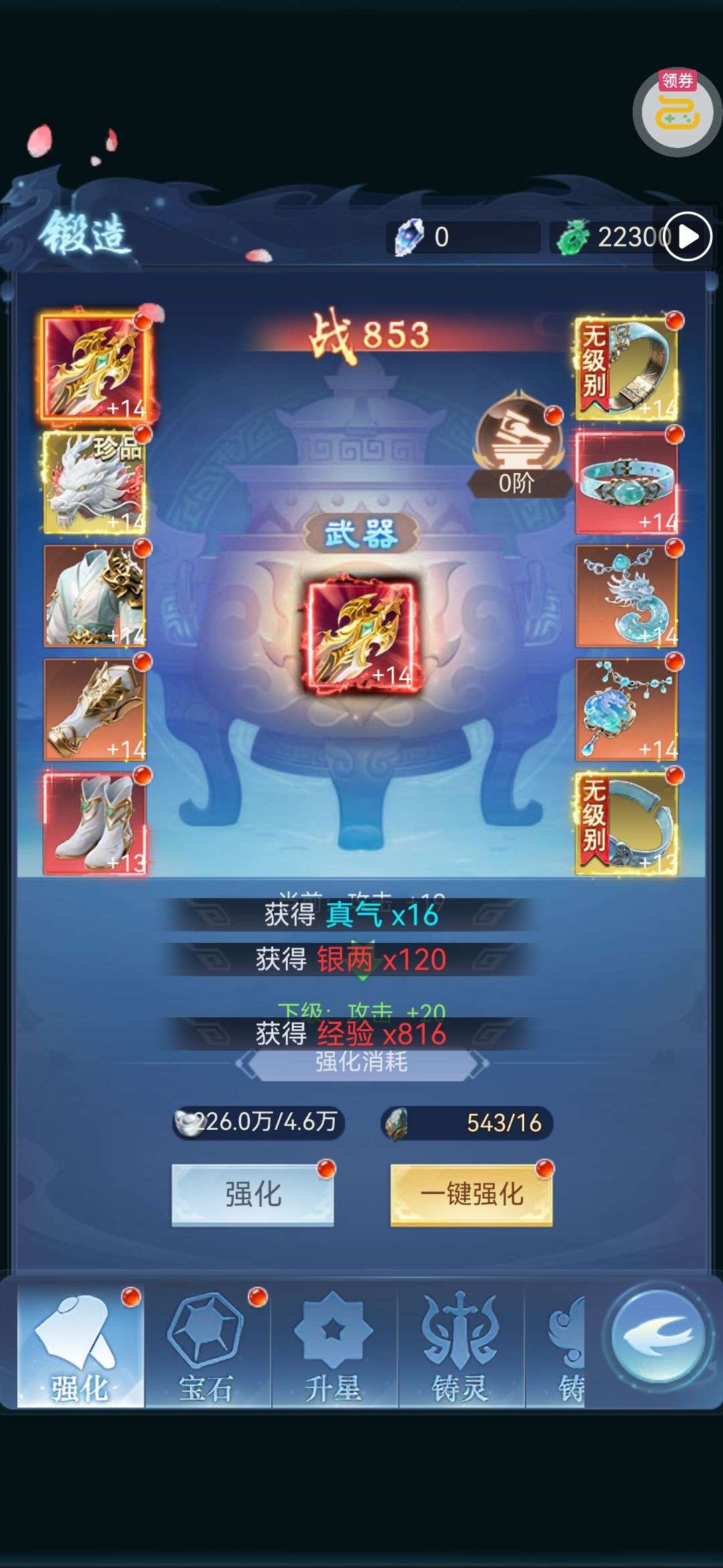 元宝*1888,悟性丹*30,太极之心*30,4级攻击宝石*1(每个账号限领一次)