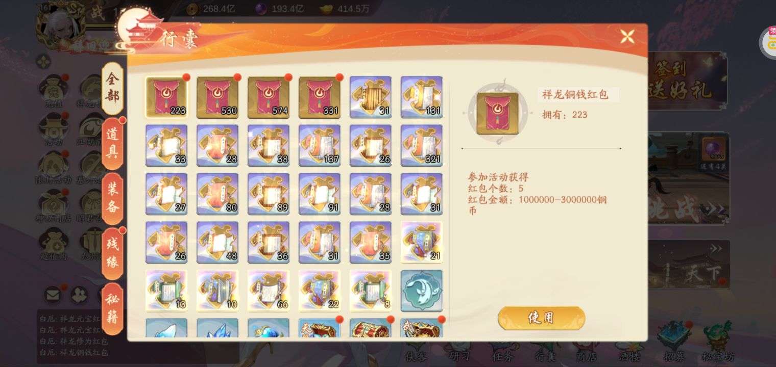 五行心法x1、洗炼石x20、2倍经验秘药x2(每个账号限领一次)