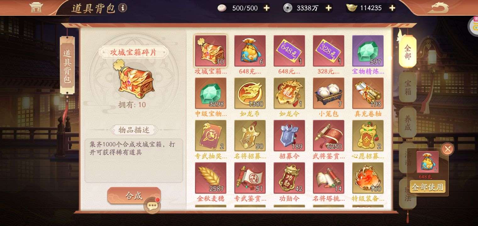 一堆圣晶石6小时*1、募魂令*10、暗淡原石*40(每个账号限领一次)