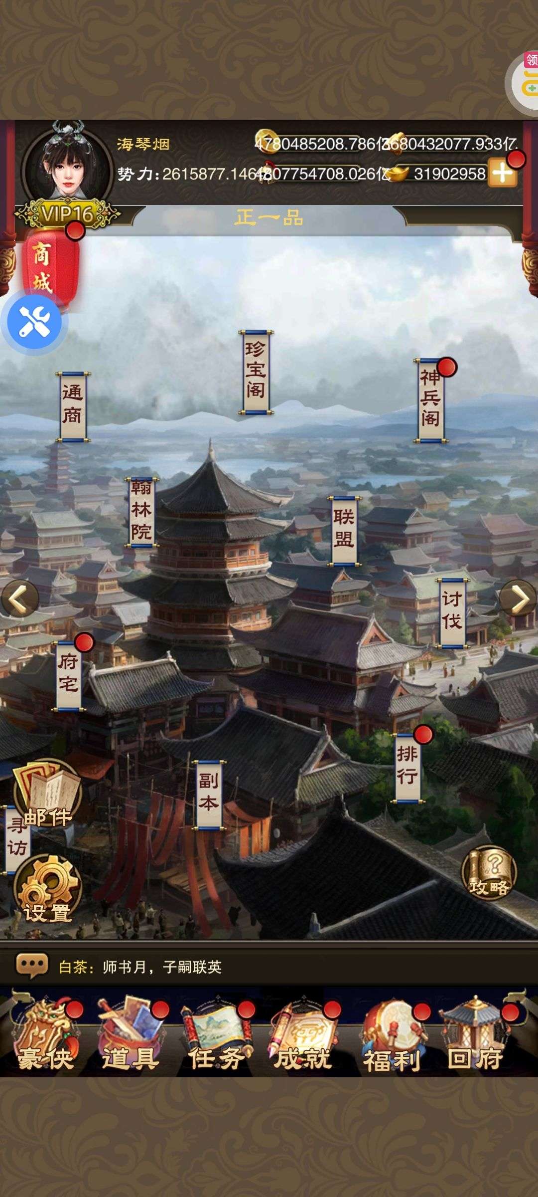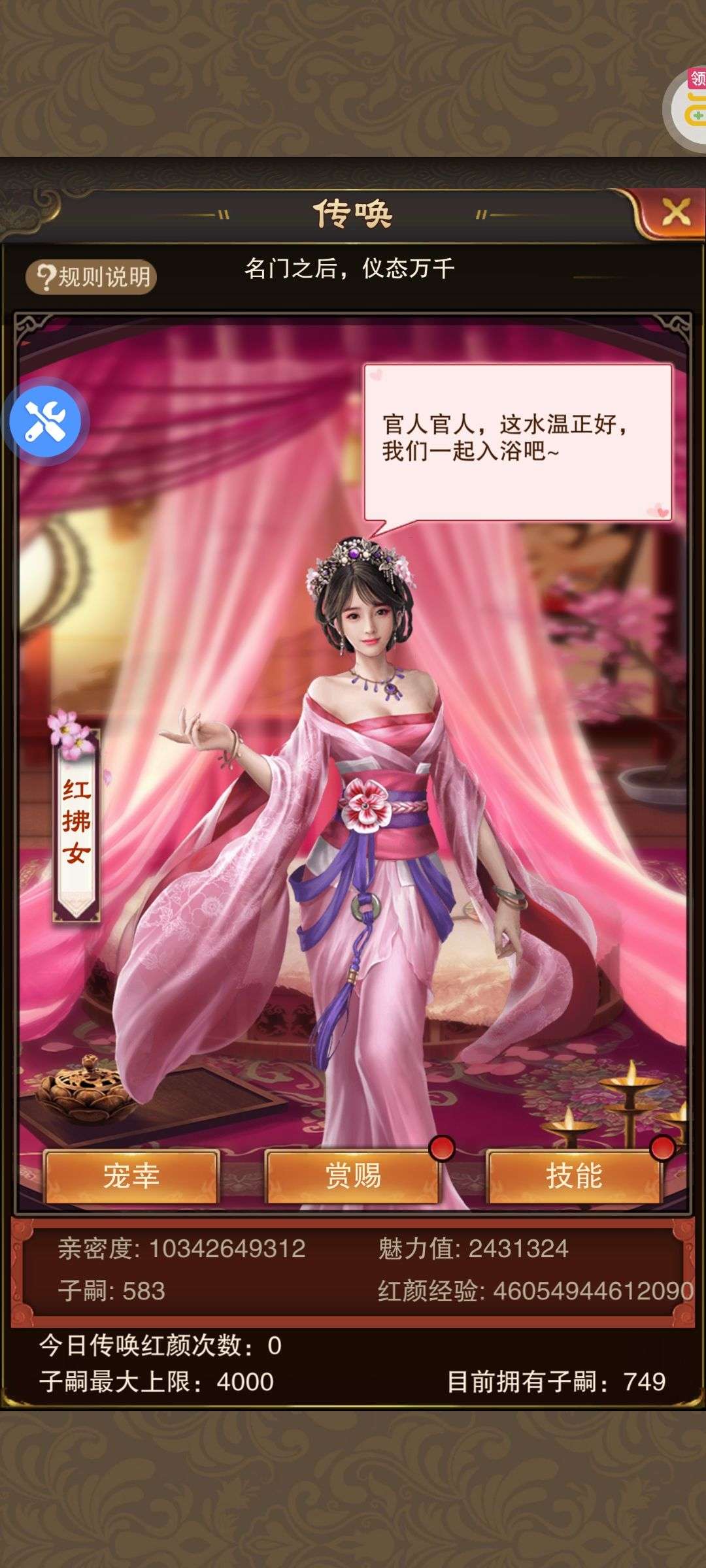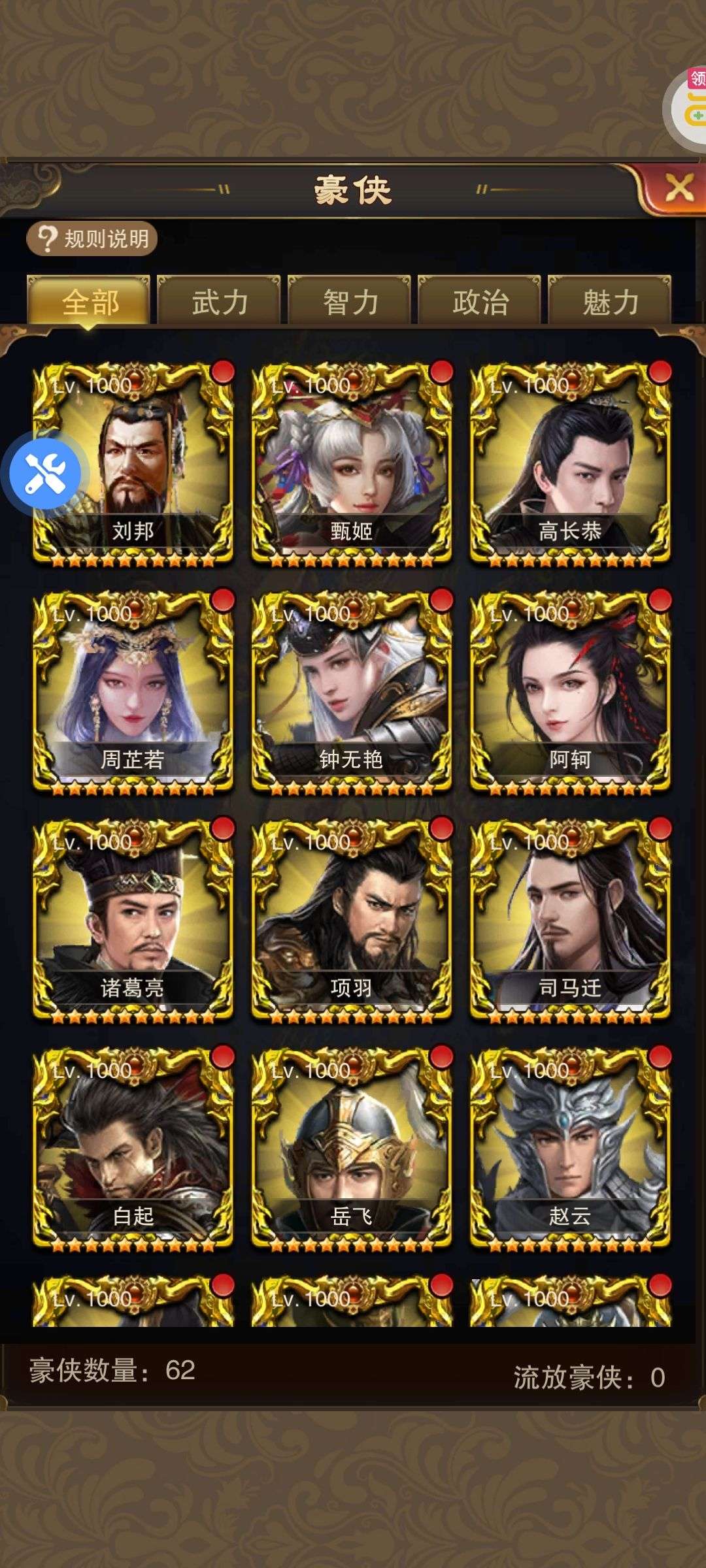 红颜50亿亲密跨服拿榜轻轻松松,账号vip15,门客目前加满3个,背包东西众多。