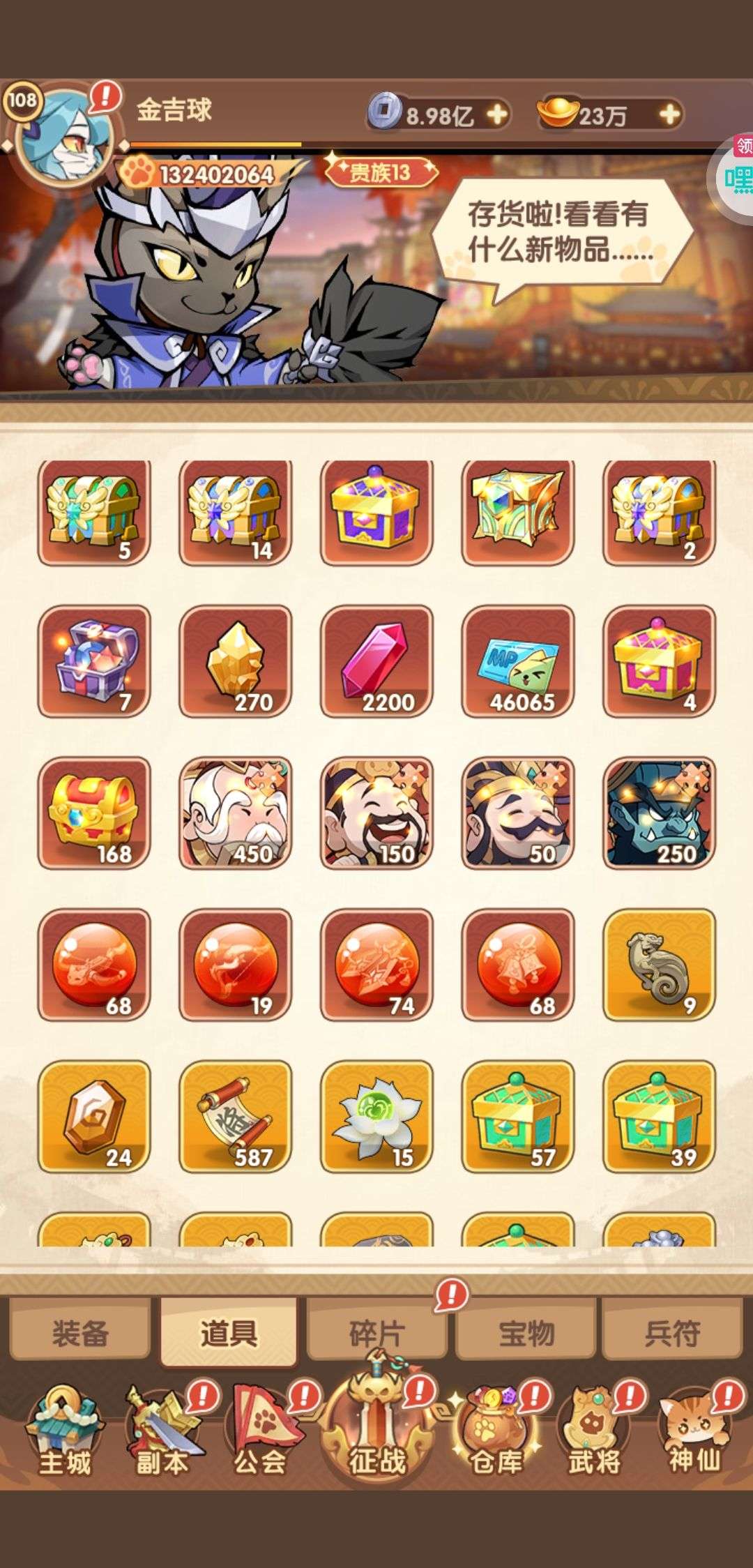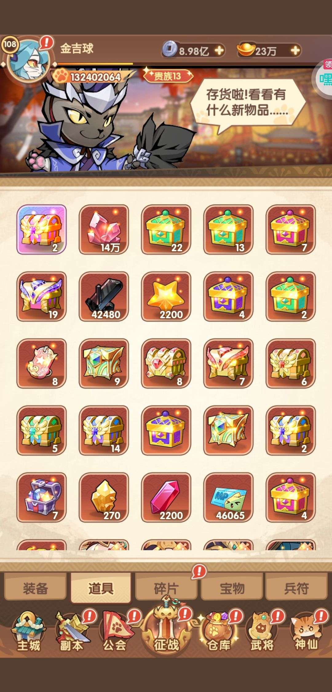 国庆活动实充5000,准备玩新区去了,仓库还剩43万猫币