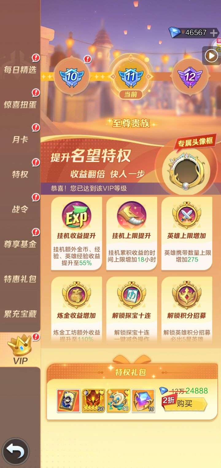 开区第三天,460W战力,VIP9,能买的全买了