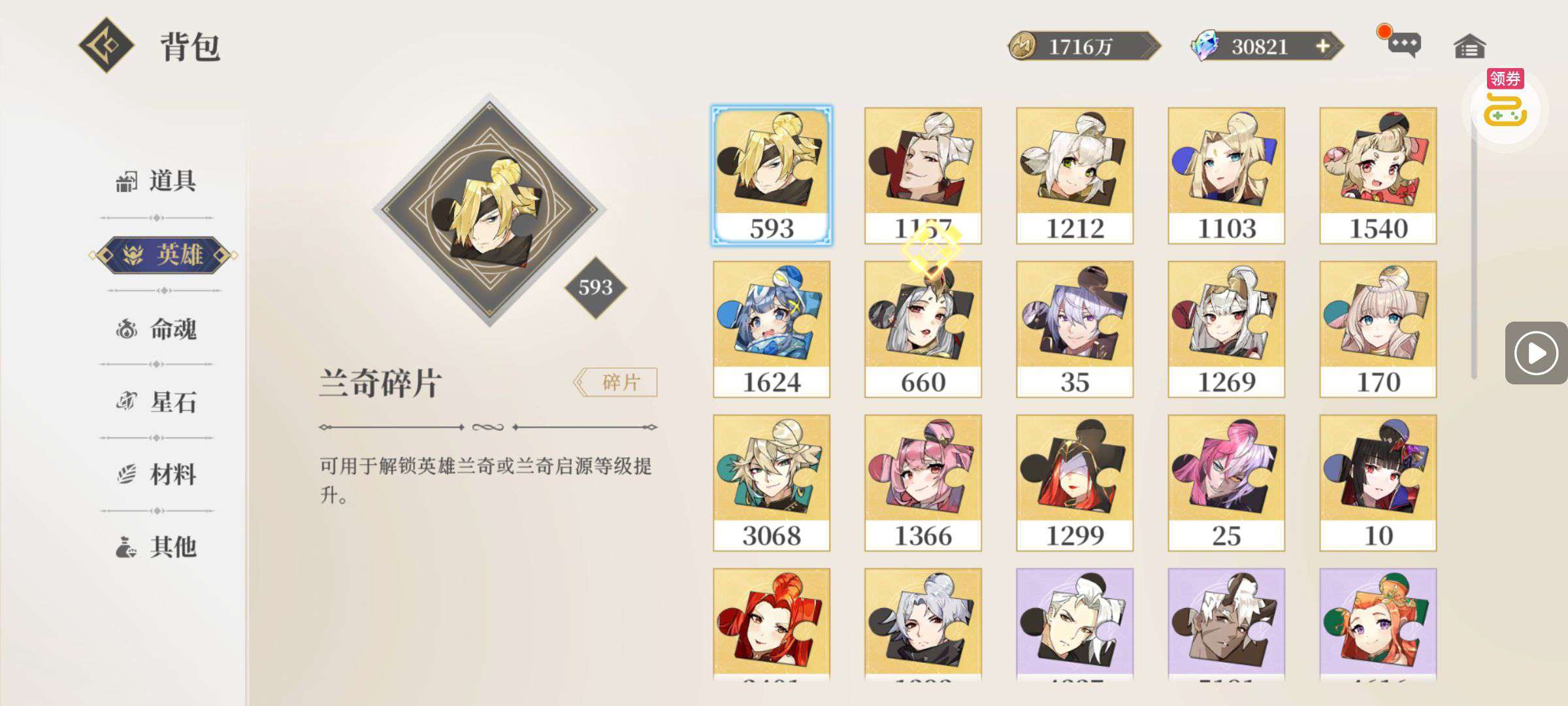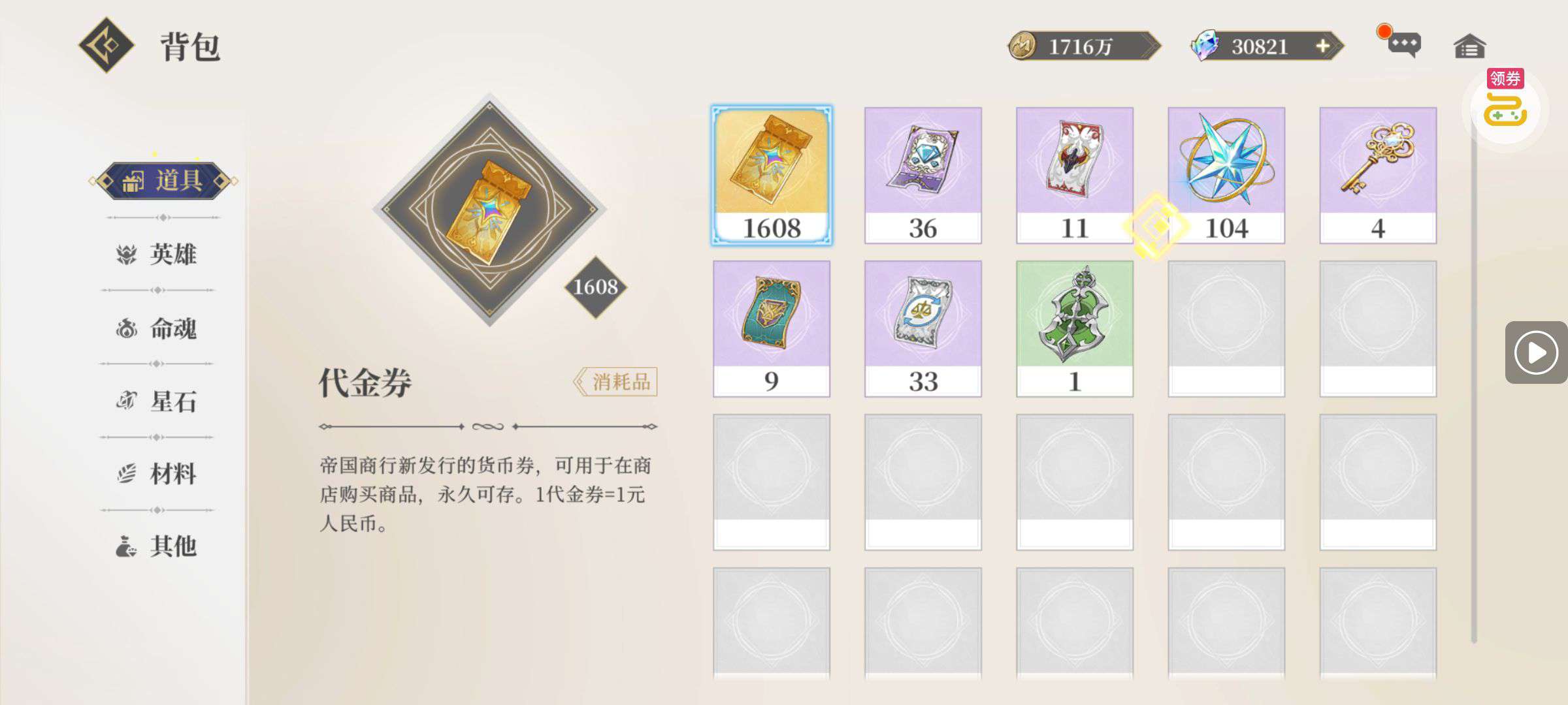 一堆圣晶石6小时*1、募魂令*10、暗淡原石*40(每个账号限领一次)