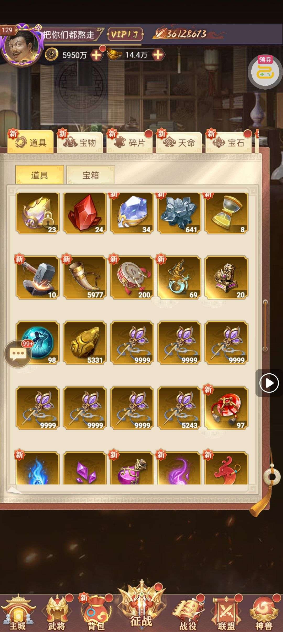 元宝*168888、神将招募令*10、普通丹药*20(每个账号限领一次)
