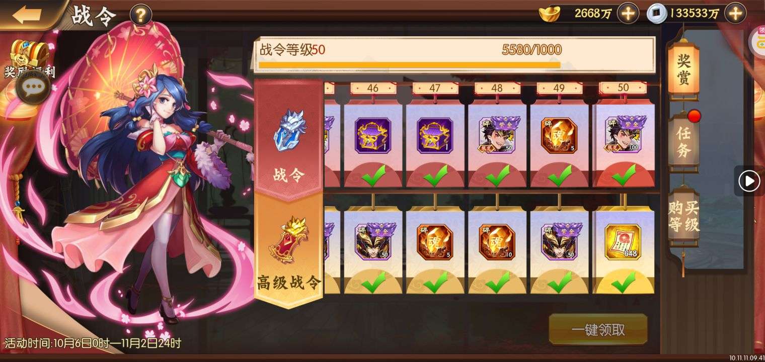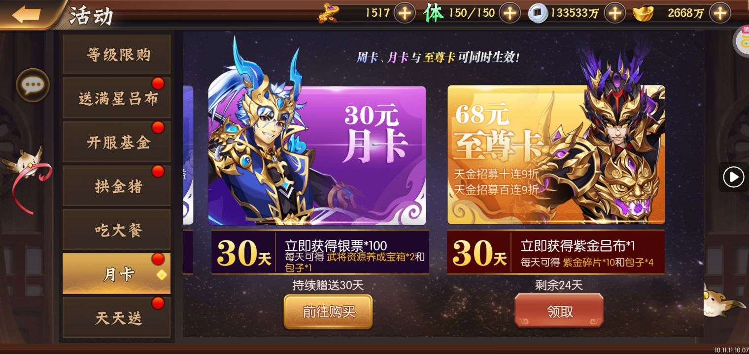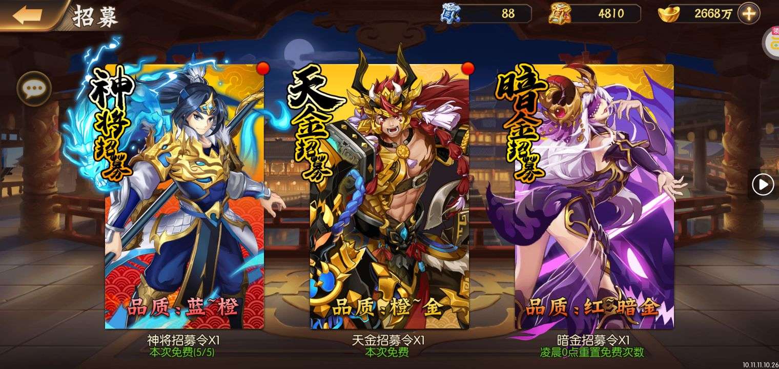 元宝*168888、神将招募令*10、普通丹药*20(每个账号限领一次)