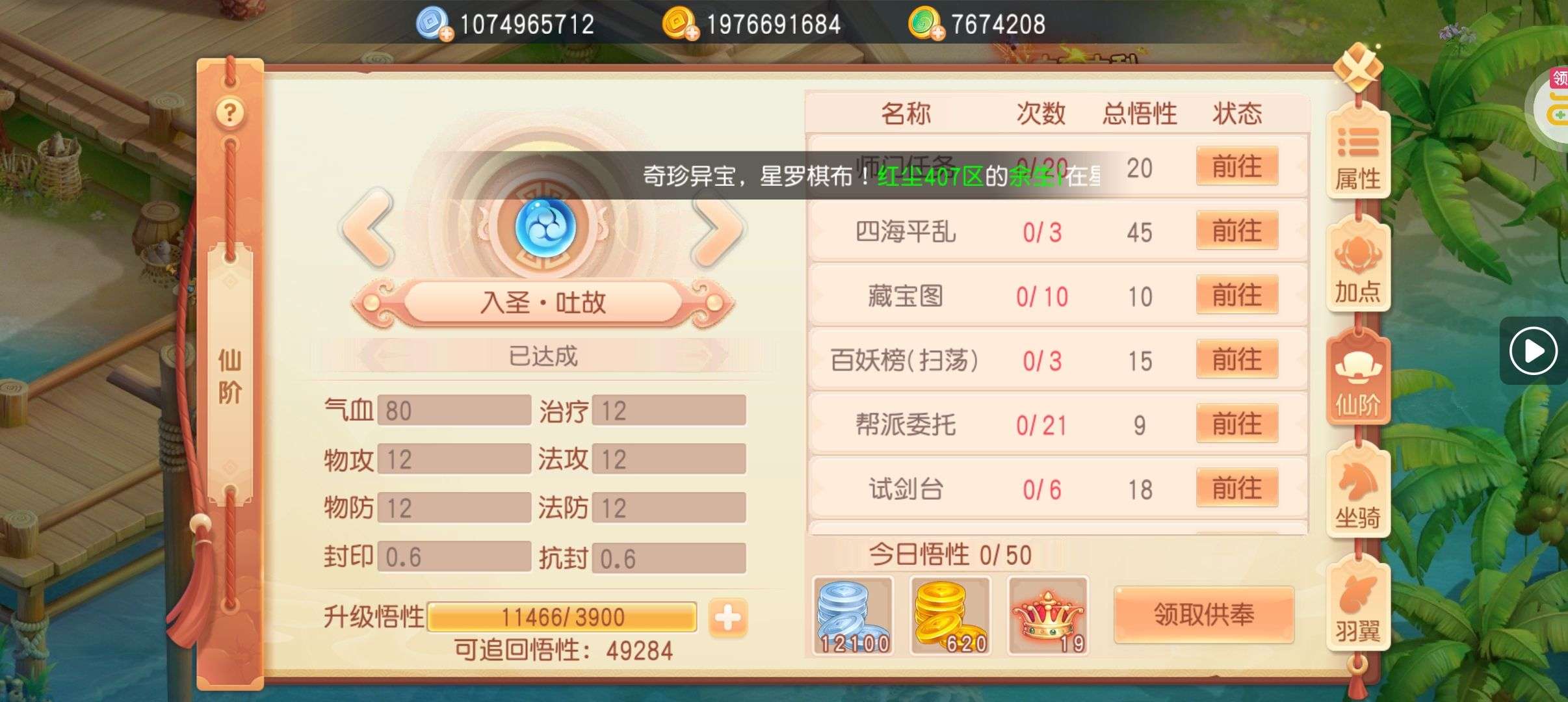 元宝*1888,悟性丹*30,太极之心*30,4级攻击宝石*1(每个账号限领一次)