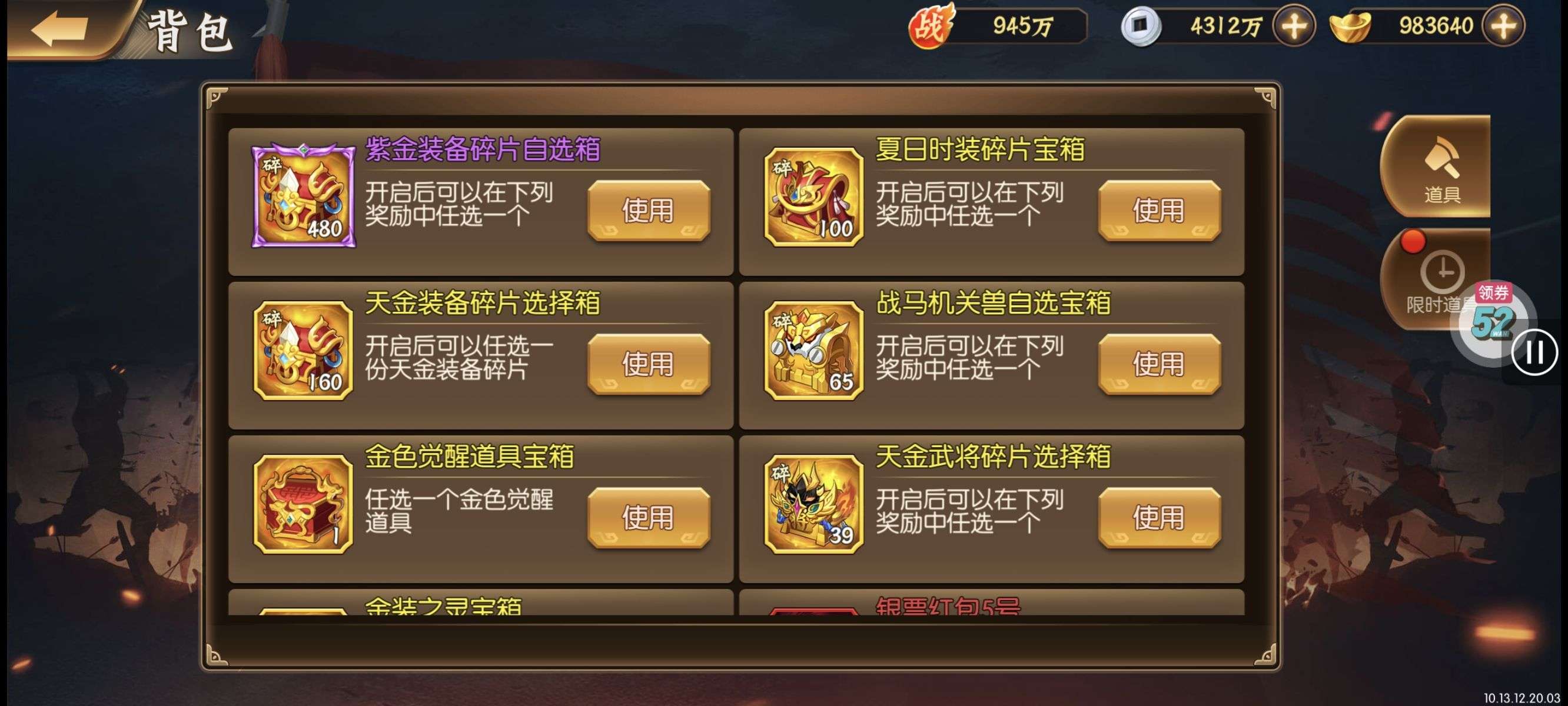 高级招募令*5、震天鼓锤*50、神兵升级石*100(每个账号限领一次)
