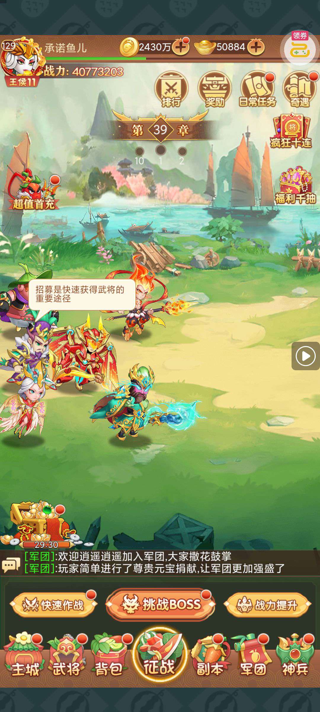 《群英打三国》三国为背景的Q版画风竖屏卡牌放置公益服手游!