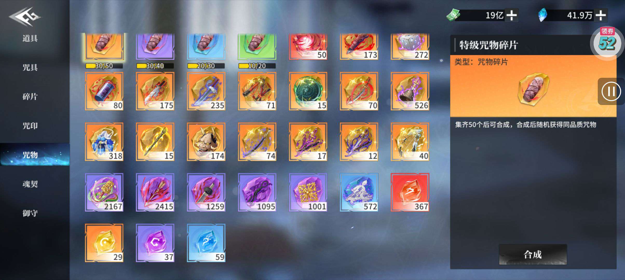 一堆圣晶石6小时*1、募魂令*10、暗淡原石*40(每个账号限领一次)