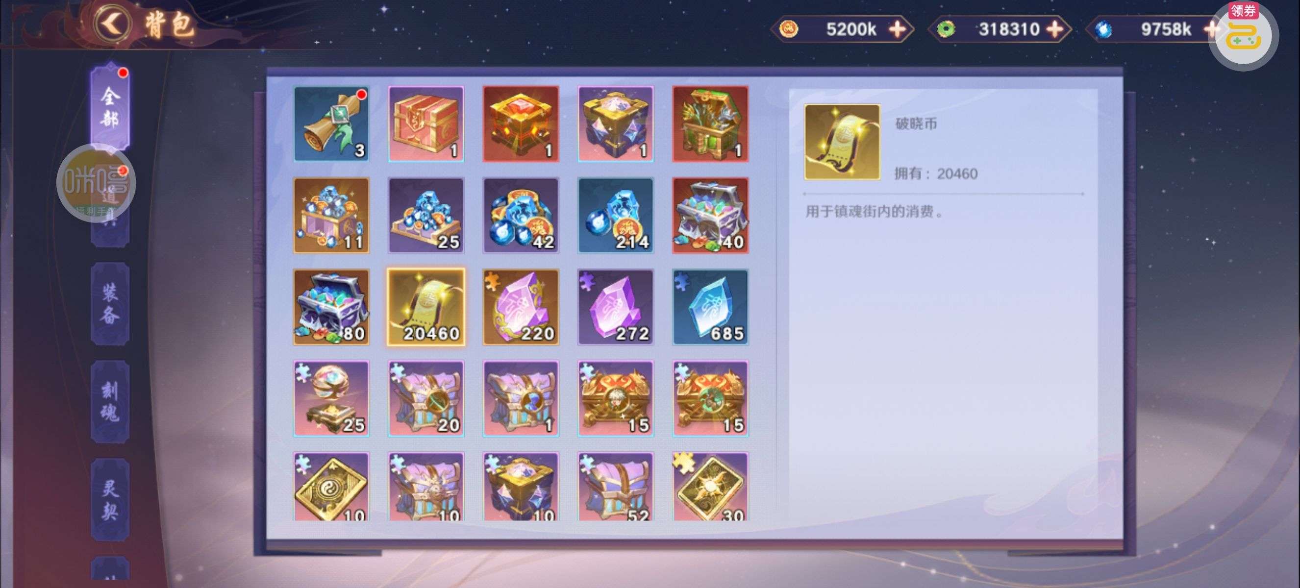 一堆圣晶石6小时*1、募魂令*10、暗淡原石*40(每个账号限领一次)