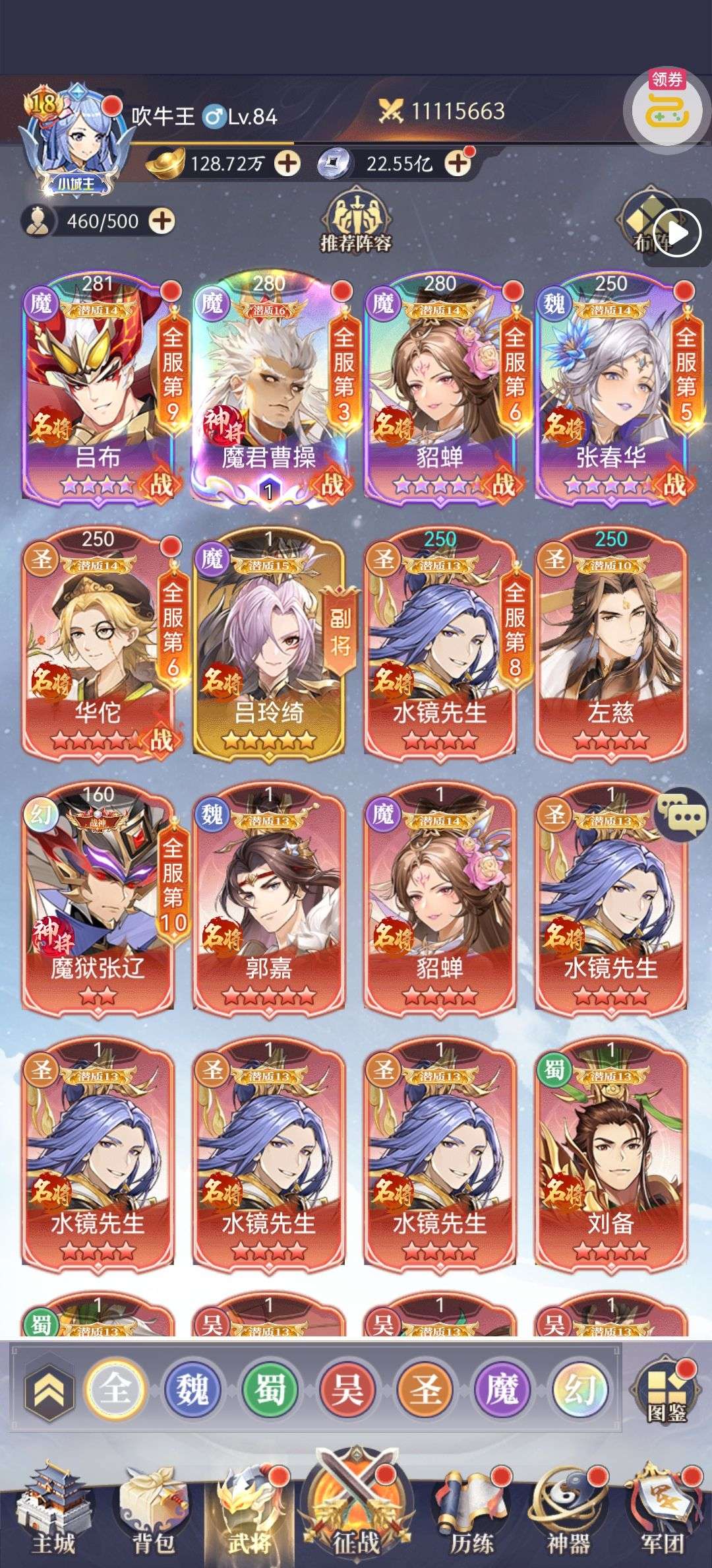 v19 精心培养,360级,20星幻将吕玲绮(满星),12星幻将蔡文姬,满星天赋,双12星古董,捡漏