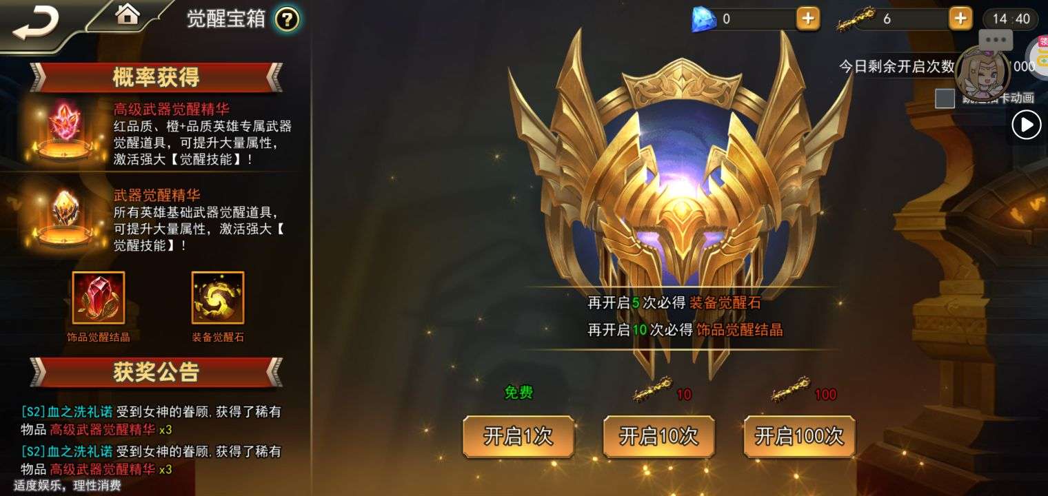 一堆圣晶石6小时*1、募魂令*10、暗淡原石*40(每个账号限领一次)