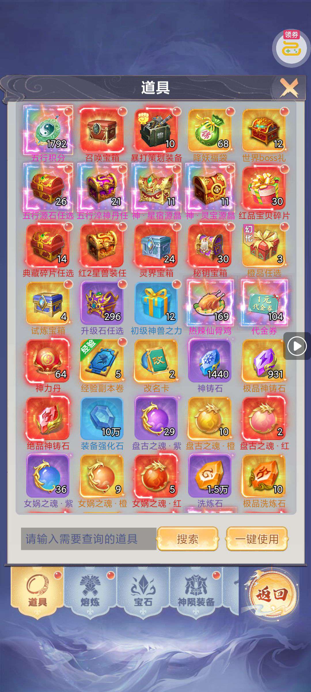 五行心法x1、洗炼石x20、2倍经验秘药x2(每个账号限领一次)