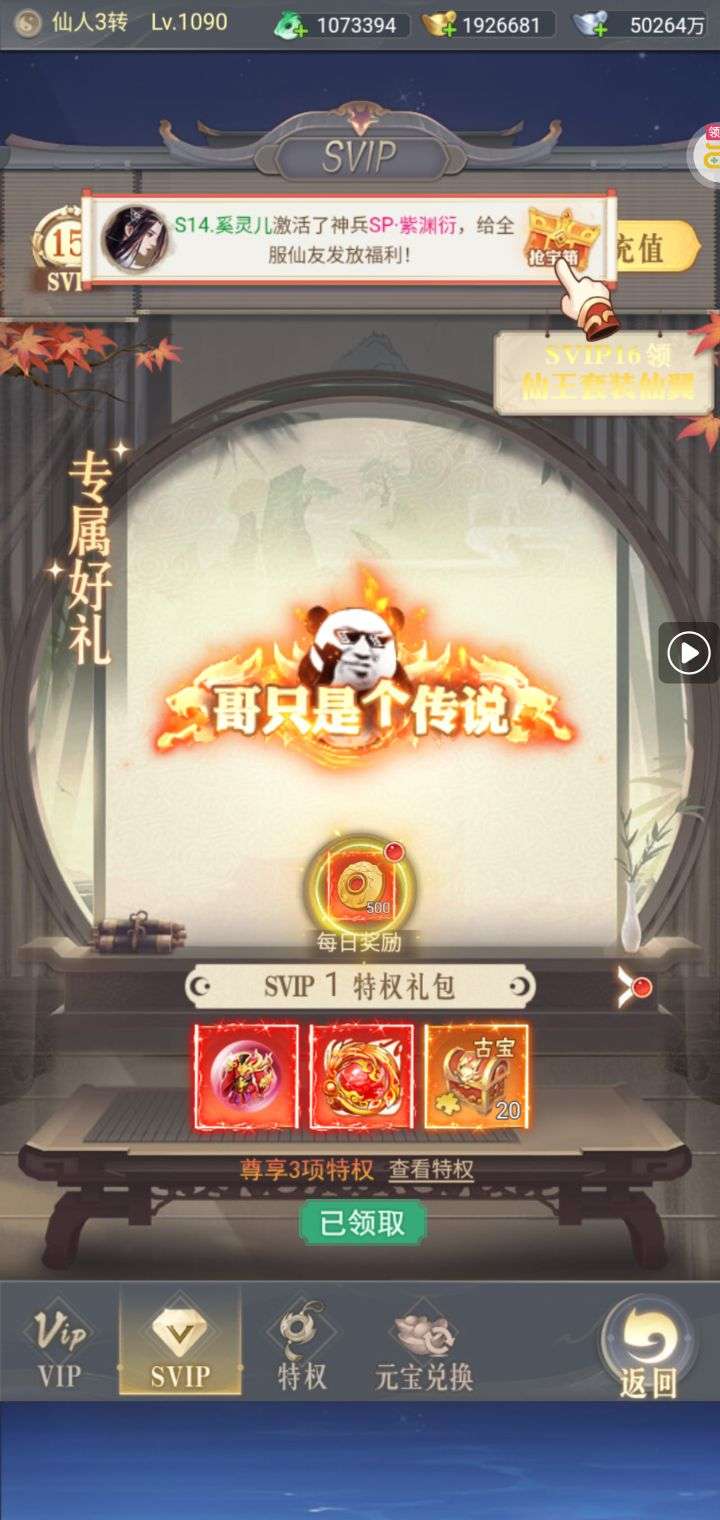 金条*588,白银占卜币*12,鬼神经验*250000(每个账号限领一次)
