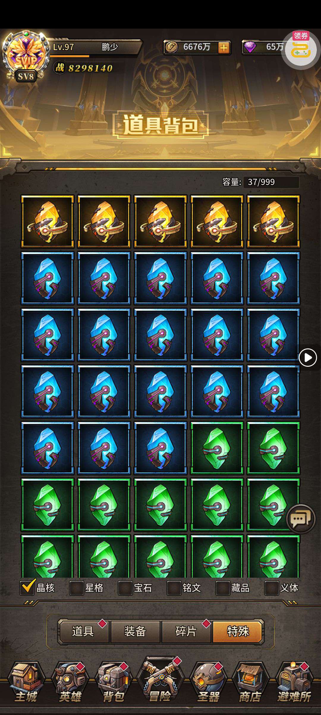 一堆圣晶石6小时*1、募魂令*10、暗淡原石*40(每个账号限领一次)