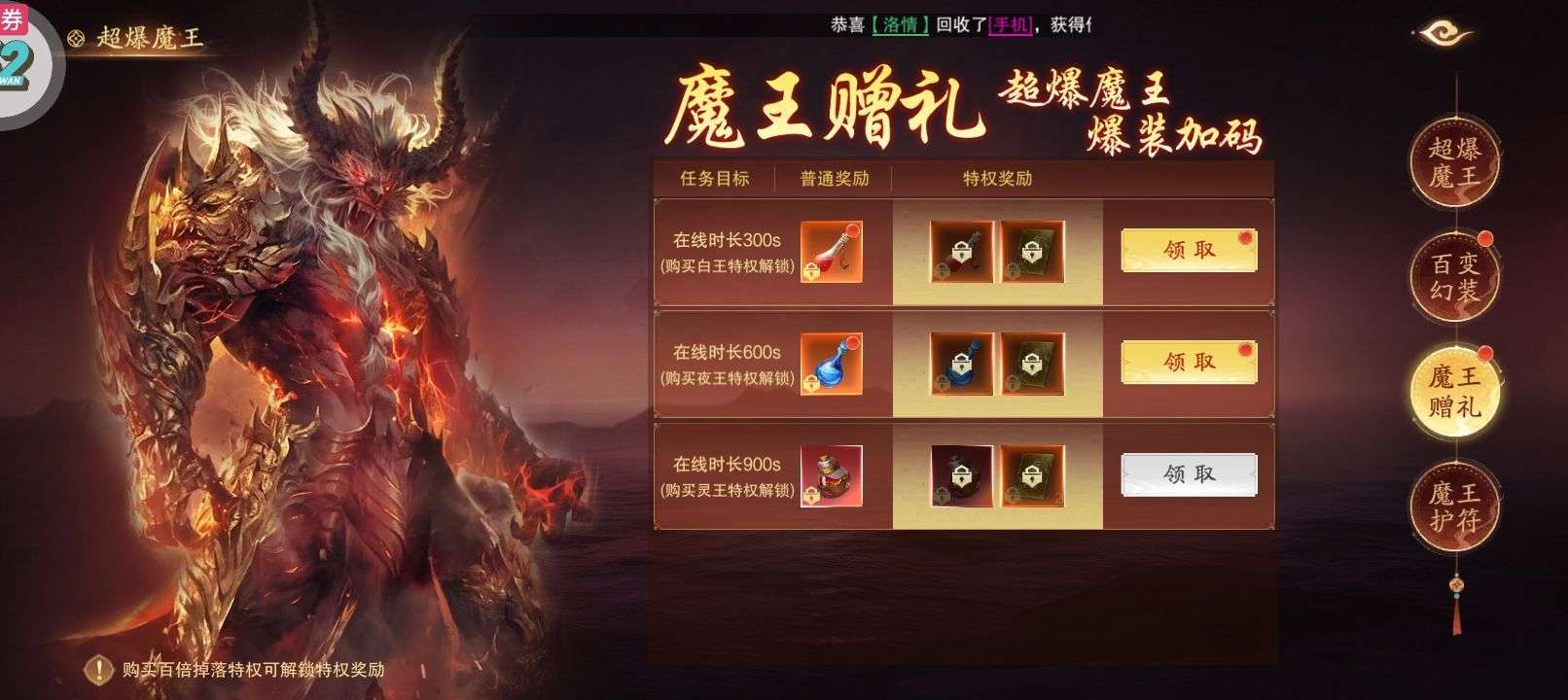 洗髓丹*50、银两袋*10(每个账号限领一次)