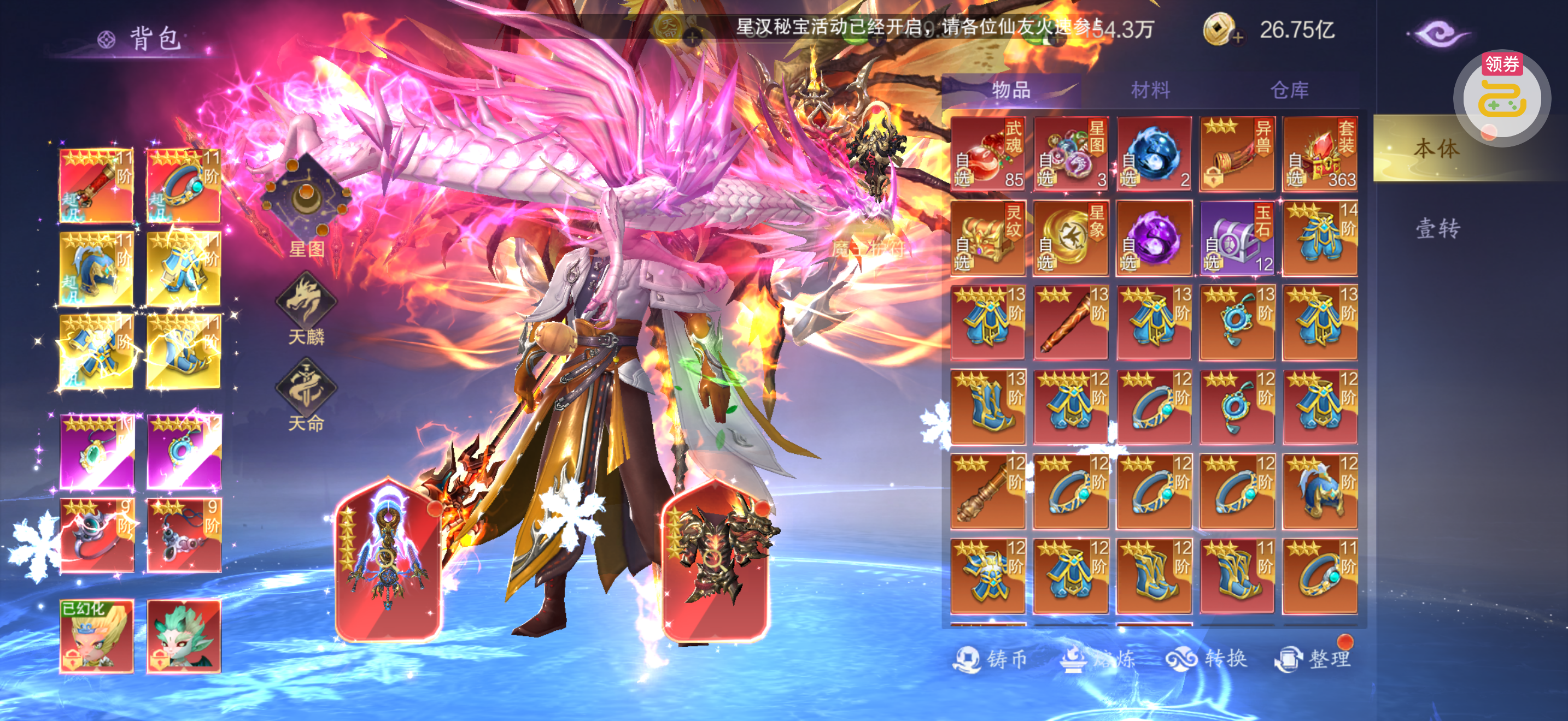五行心法x1、洗炼石x20、2倍经验秘药x2(每个账号限领一次)