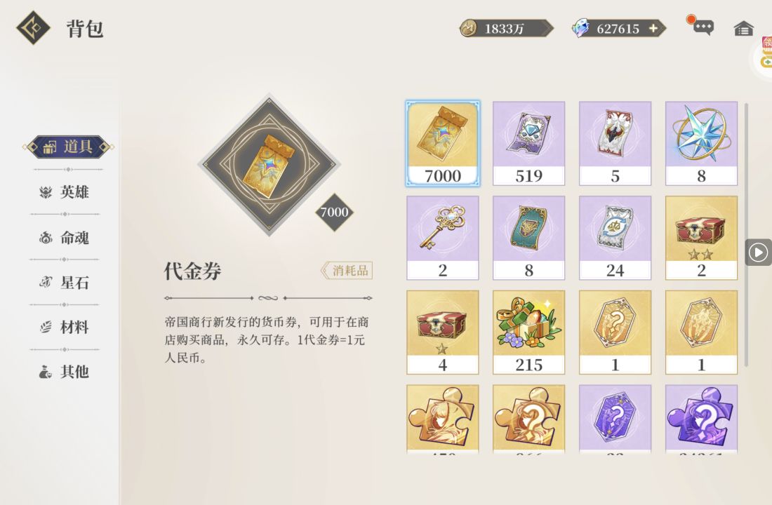 一堆圣晶石6小时*1、募魂令*10、暗淡原石*40(每个账号限领一次)