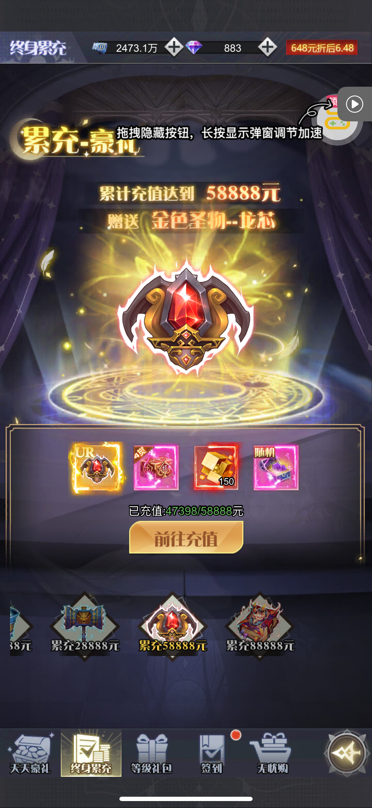 一堆圣晶石6小时*1、募魂令*10、暗淡原石*40(每个账号限领一次)