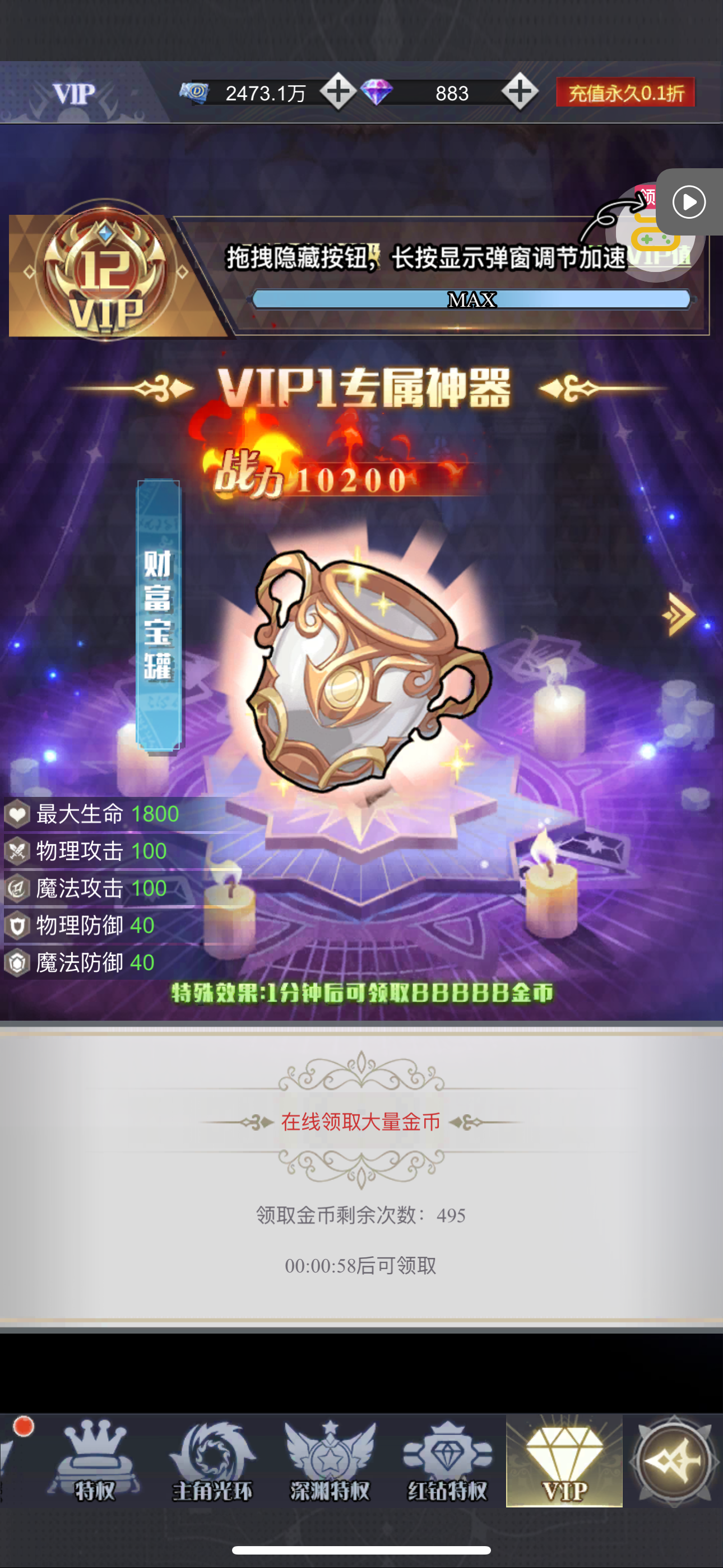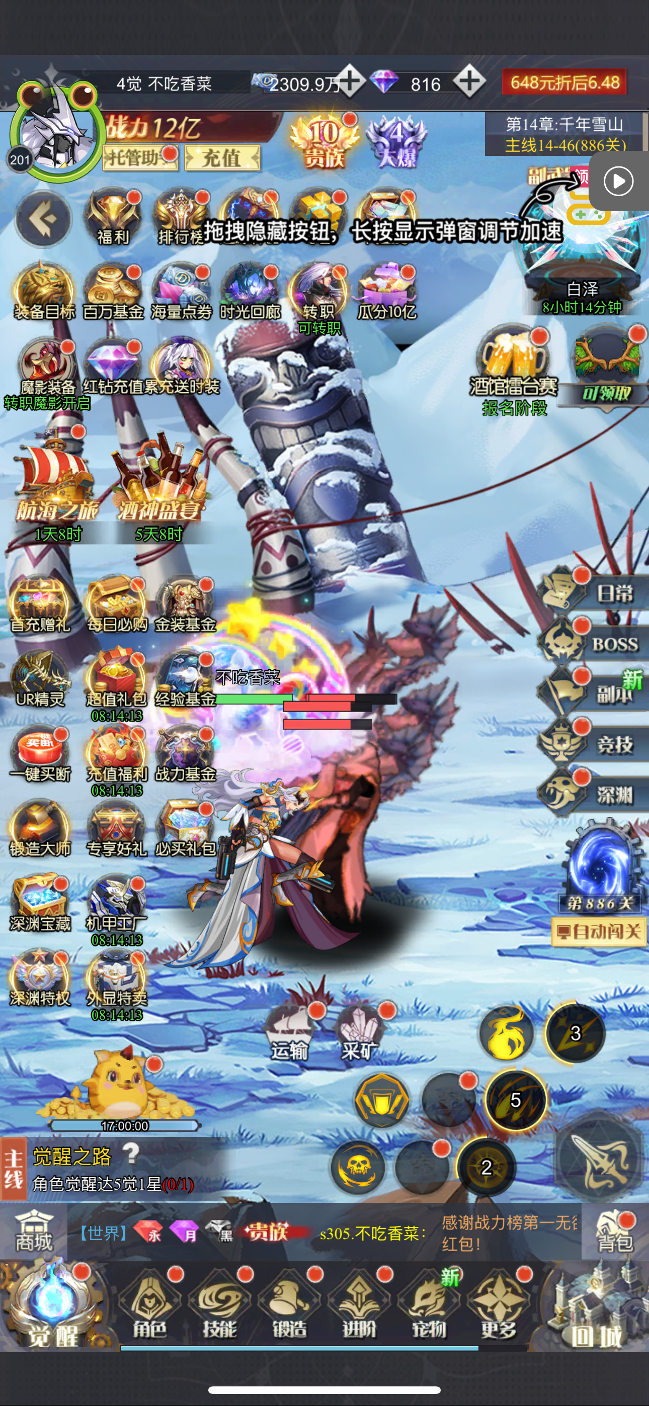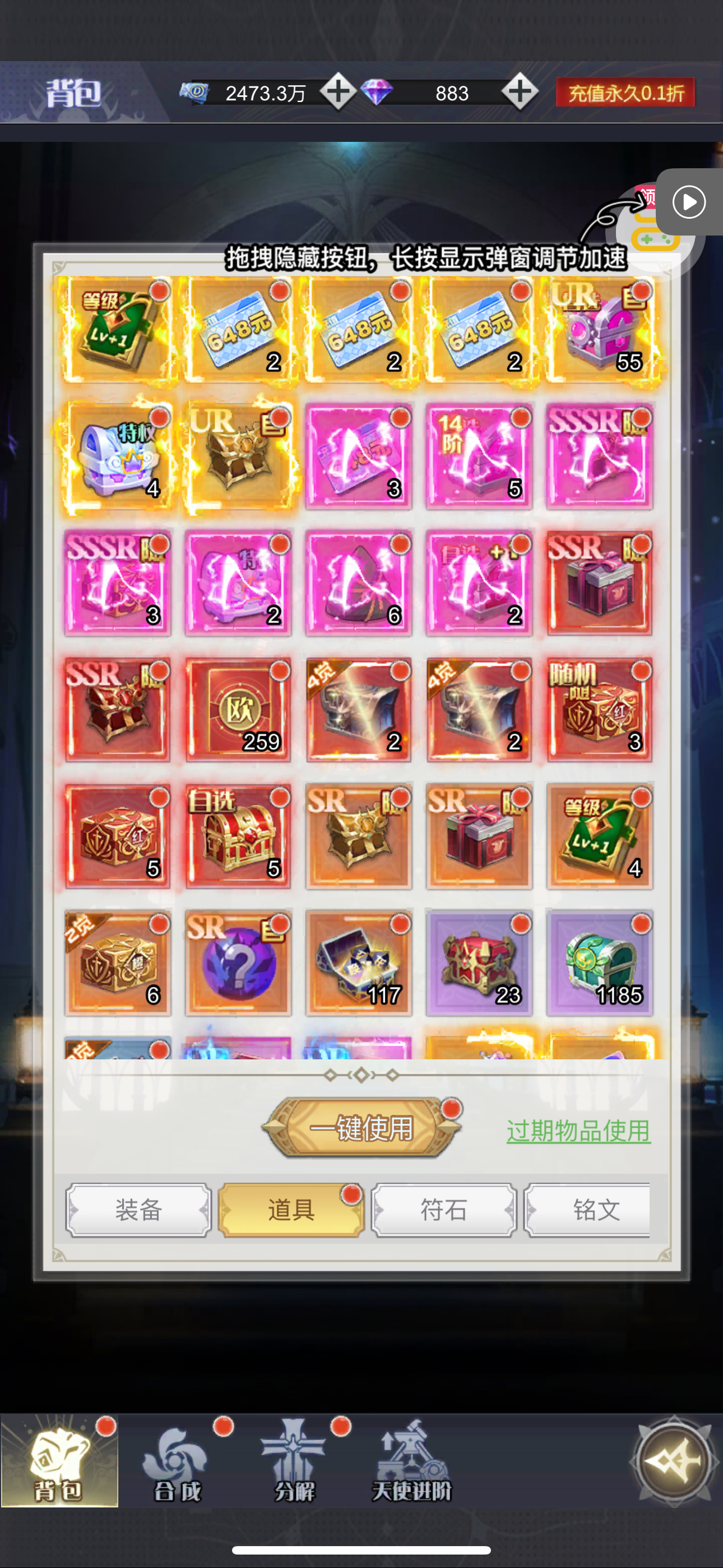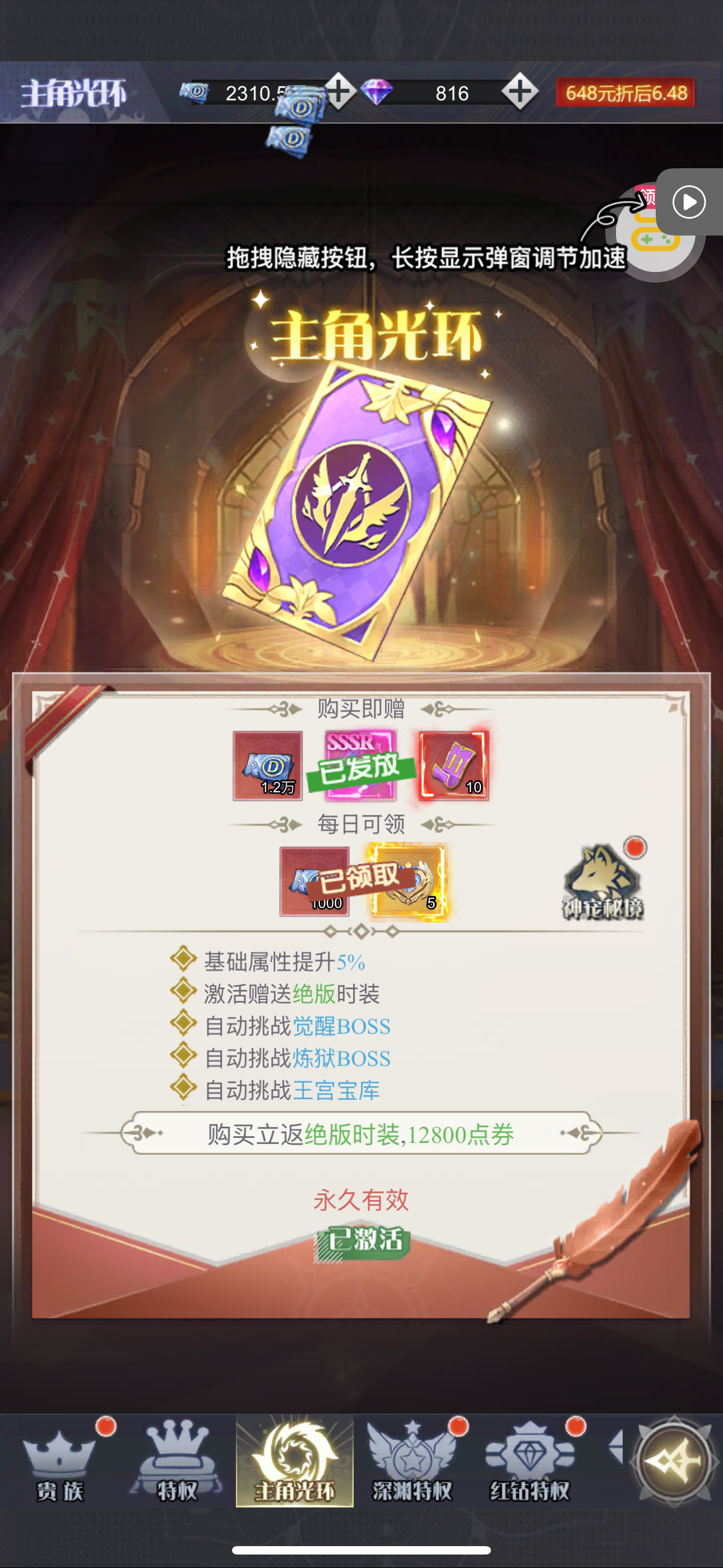 深渊契约,特权都开了,一键买断,贵族11,深渊特权全开。背包里东西多多。完了几天就没玩了