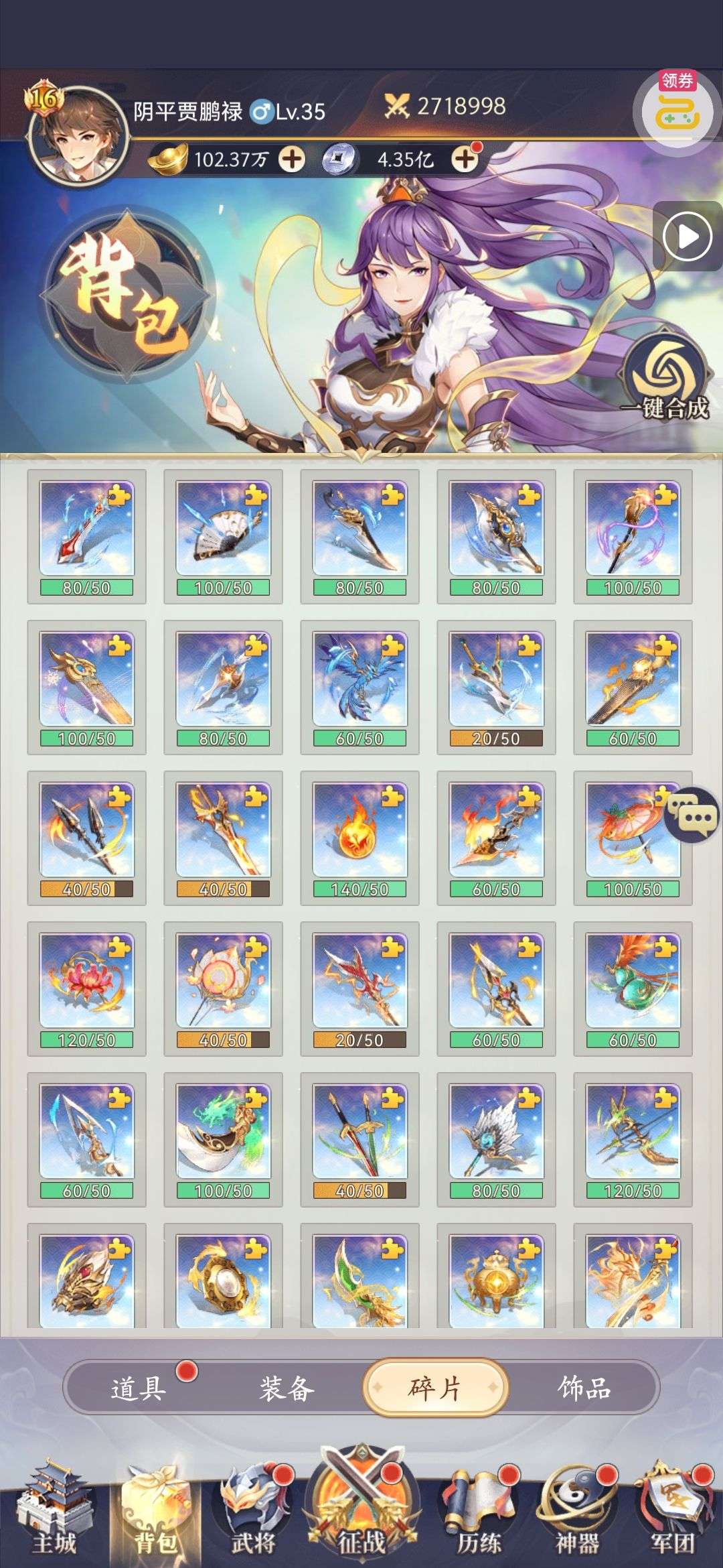 高级招募令*5、震天鼓锤*50、神兵升级石*100(每个账号限领一次)