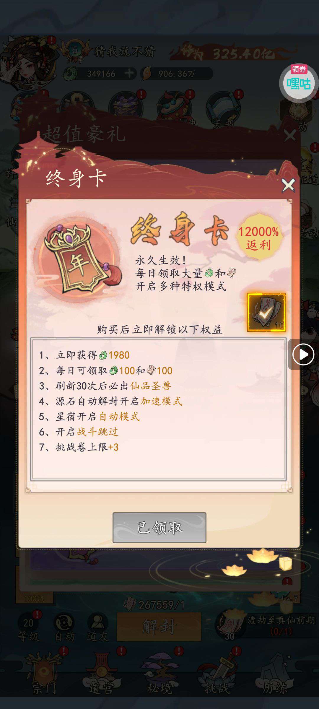 五行心法x1、洗炼石x20、2倍经验秘药x2(每个账号限领一次)