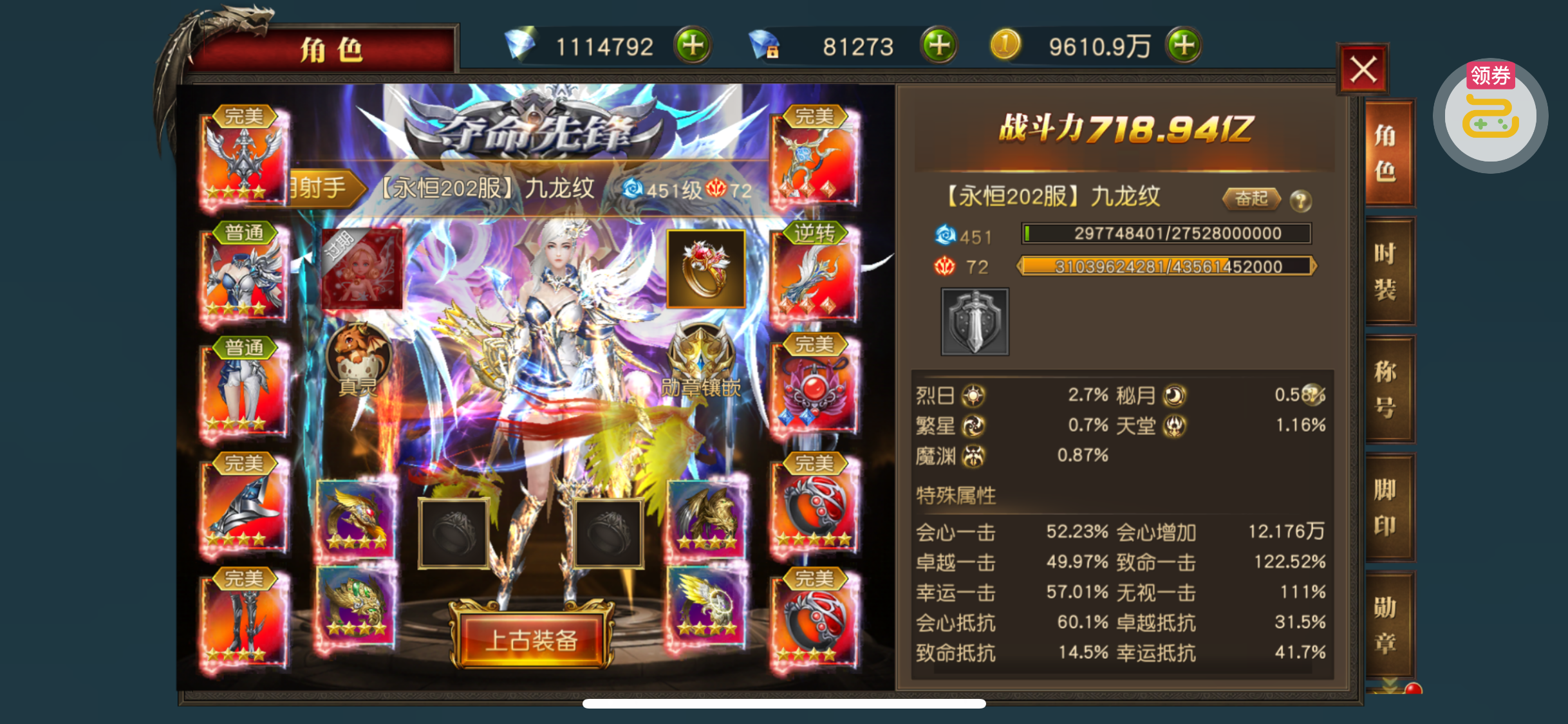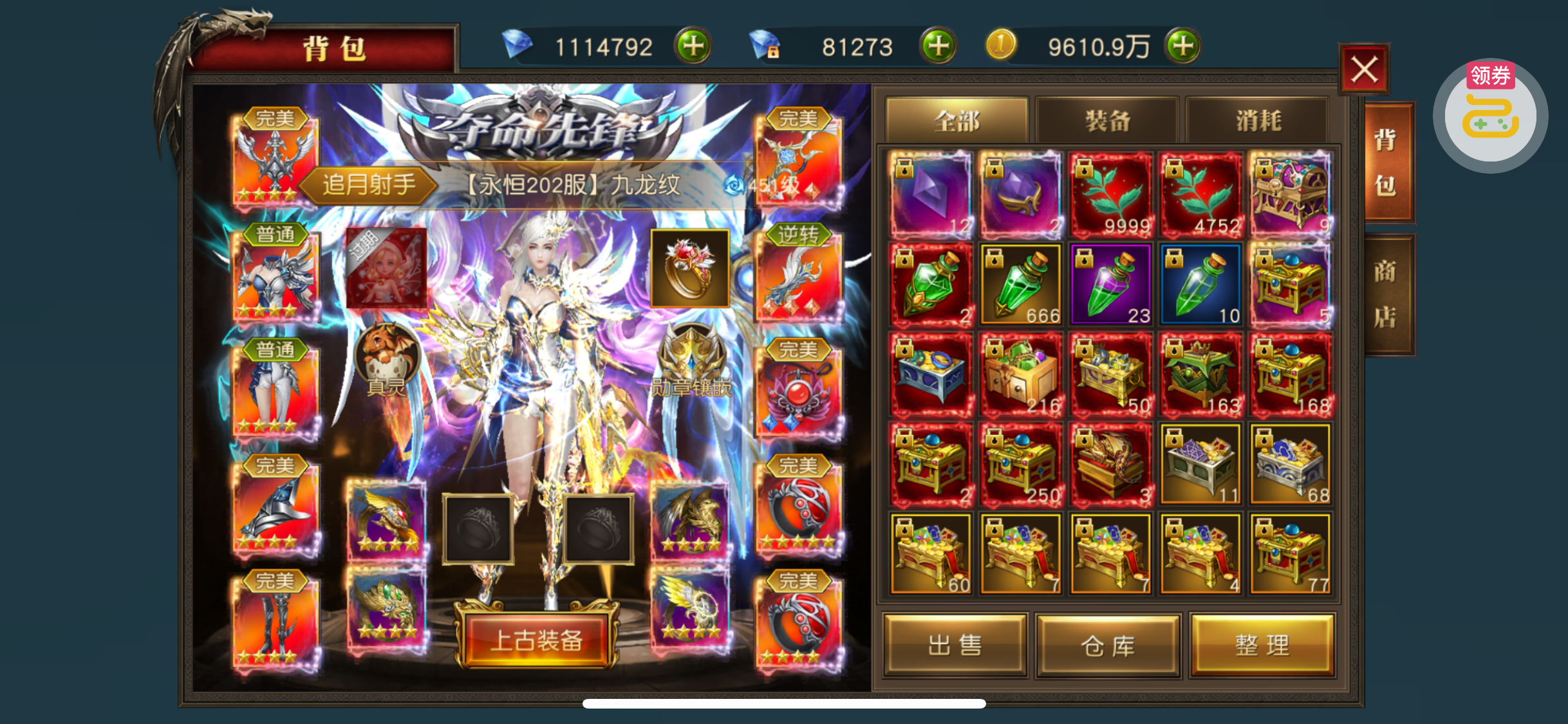权限全开,16级贵族,号上还有钻石有80多万,精灵天使靠前!