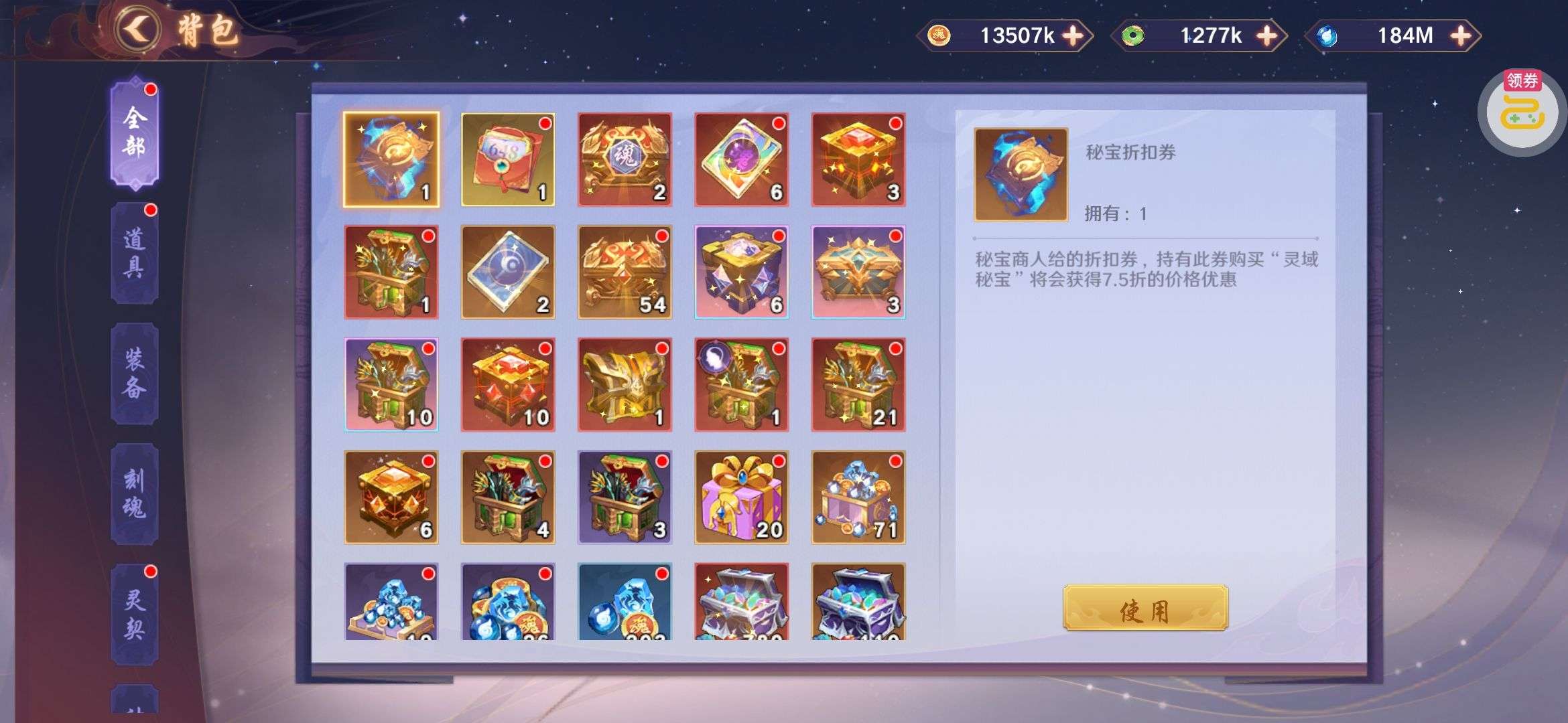 一堆圣晶石6小时*1、募魂令*10、暗淡原石*40(每个账号限领一次)