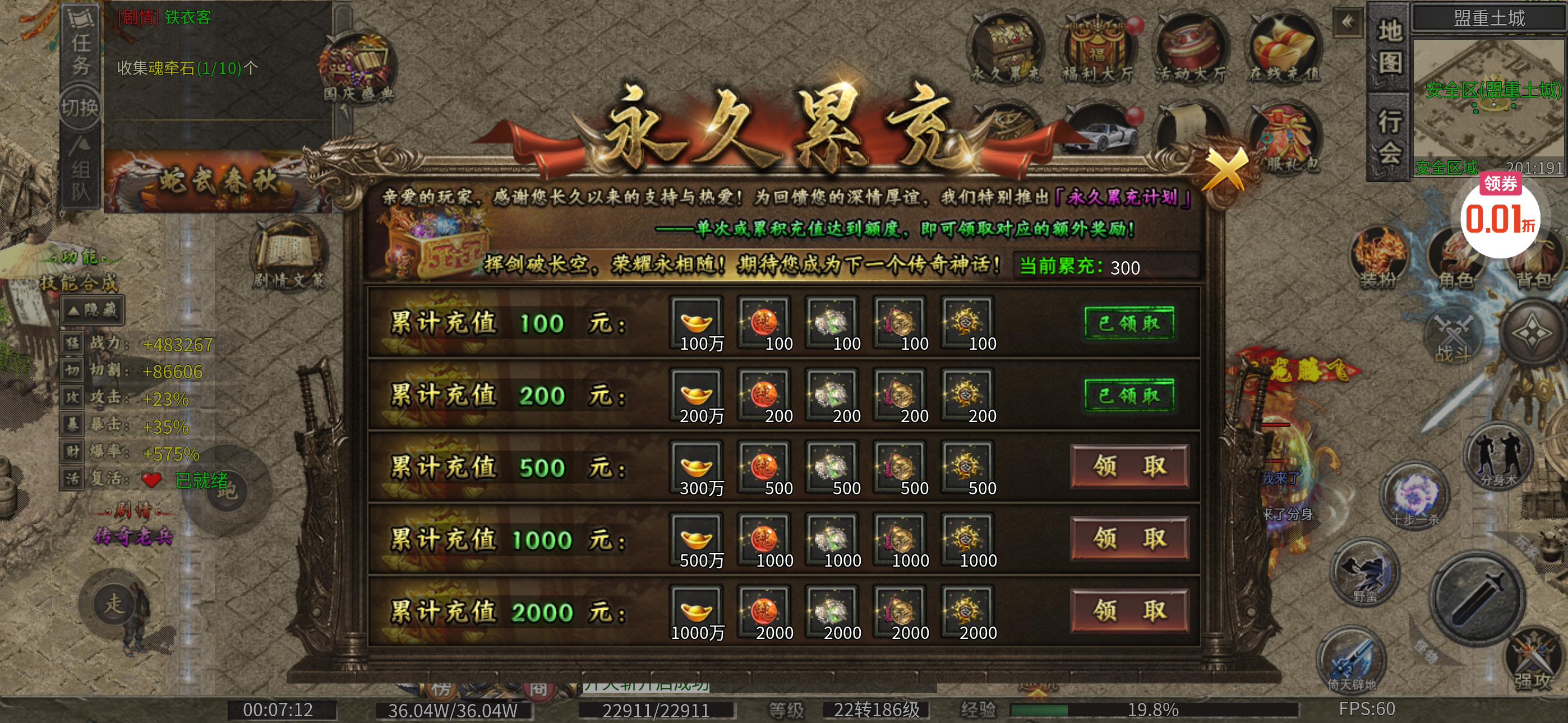 强化药剂*200、钻石招募币*20、金币*50W(每个账号限领一次)