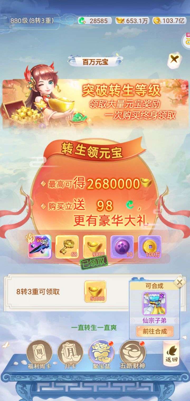 洗髓丹*50、银两袋*10(每个账号限领一次)