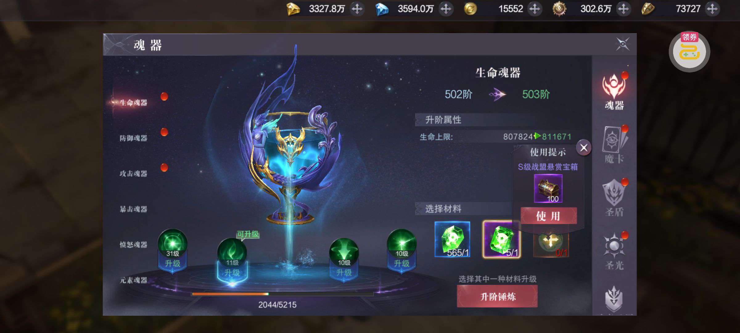 魂晶*888,魂师召唤券*10,武魂水晶*5(每个账号限领一次)