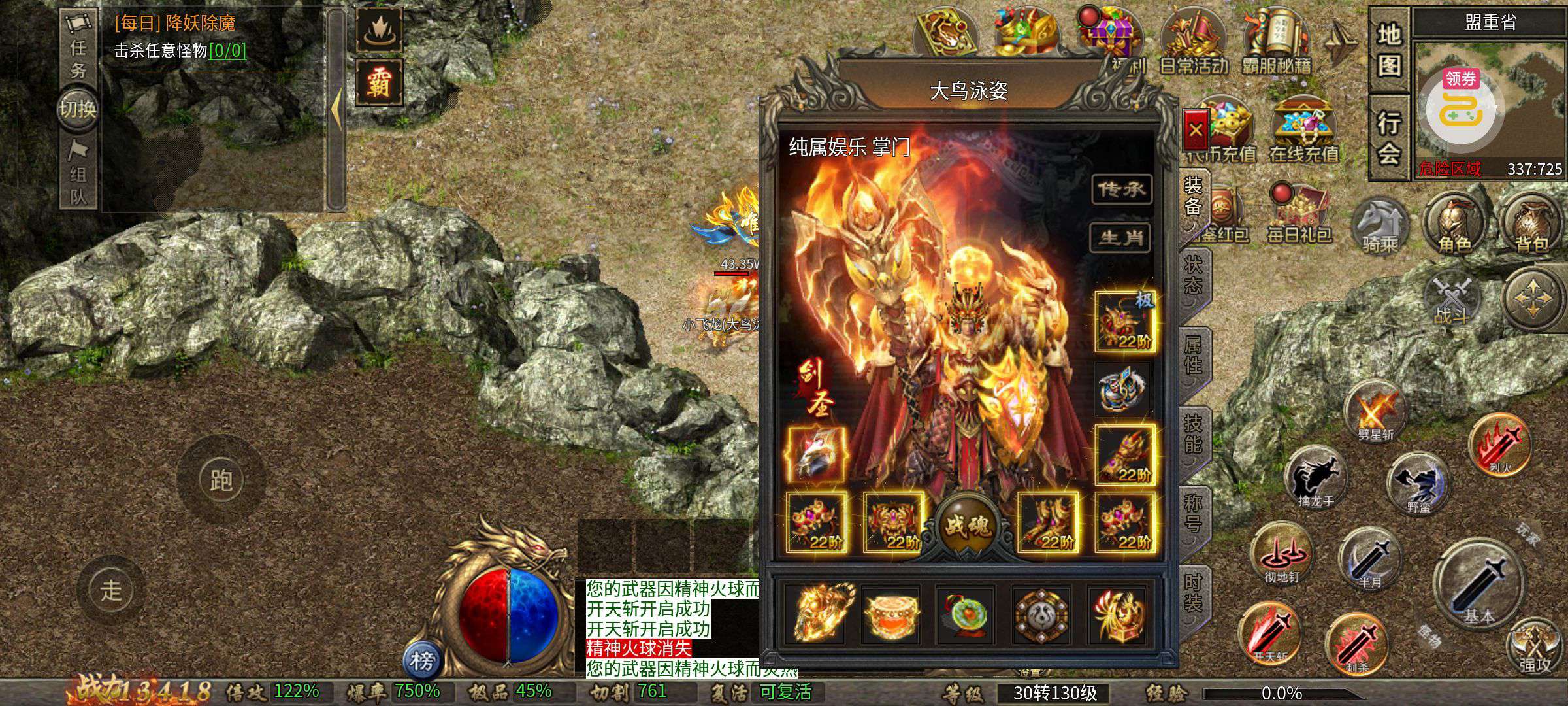 《雄霸天地》手游公益服散人花时间一样可以全身到顶!