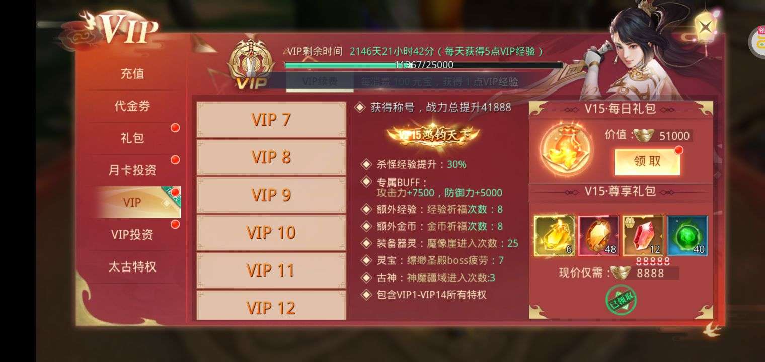 金条*588,白银占卜币*12,鬼神经验*250000(每个账号限领一次)