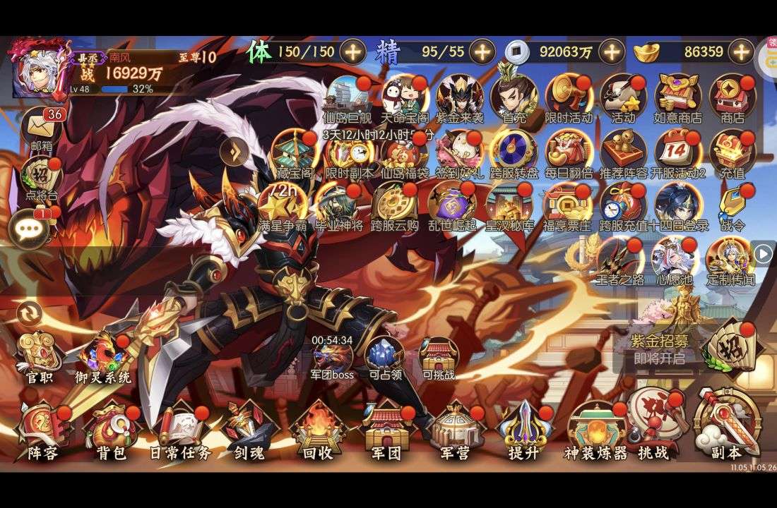 《雄霸天地》手游公益服散人花时间一样可以全身到顶!