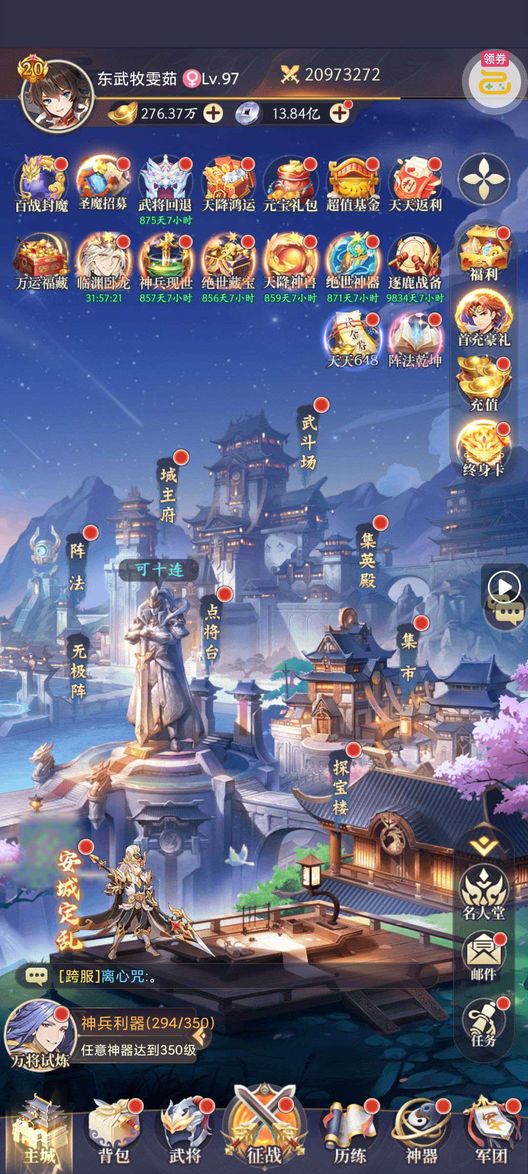 《雄霸天地》手游公益服散人花时间一样可以全身到顶!