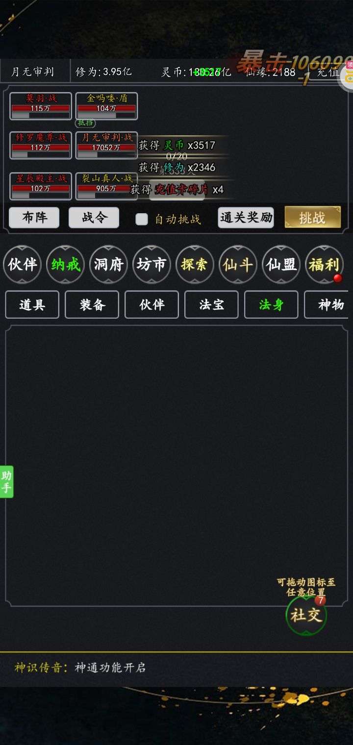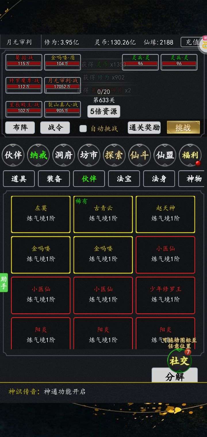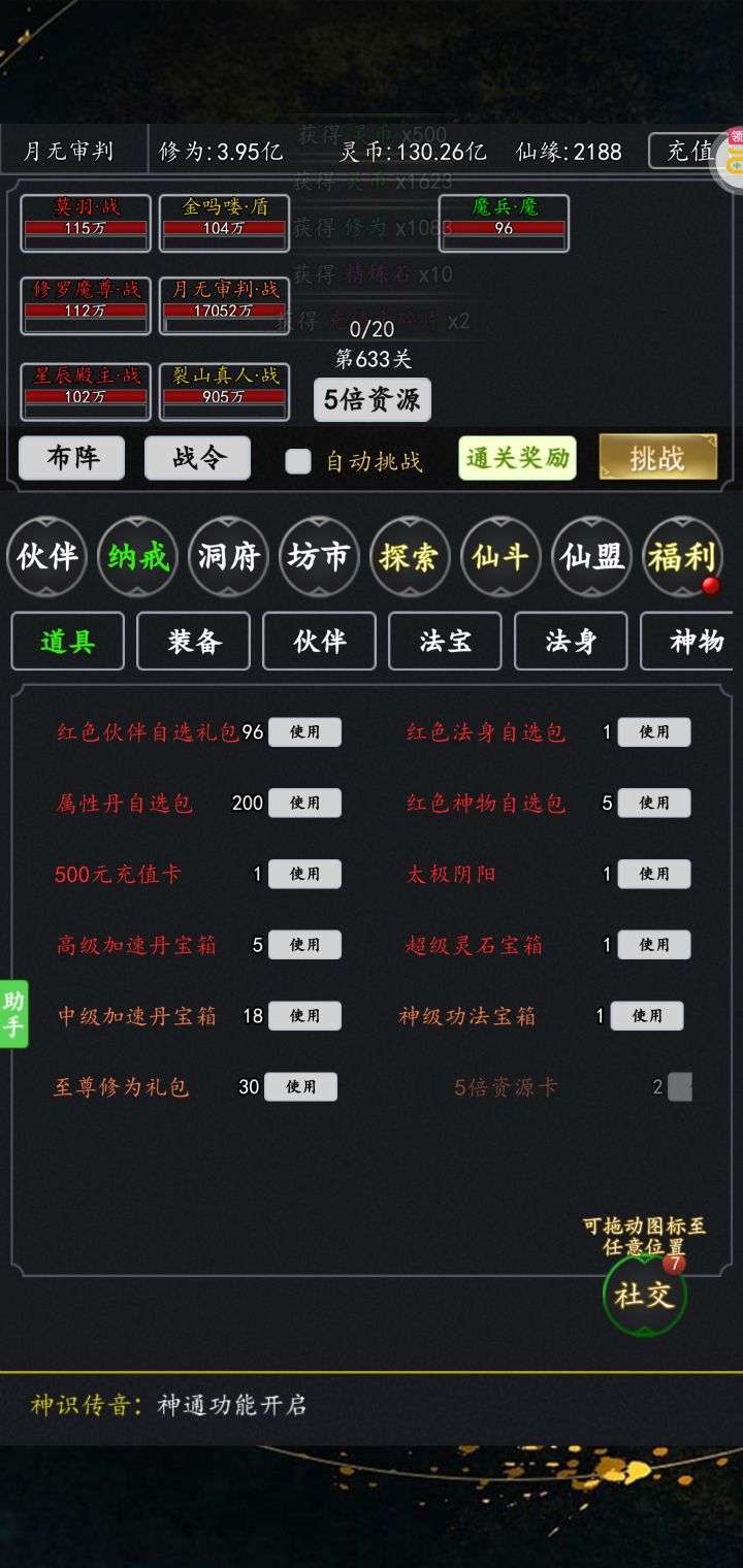 10万仙缘!47张500元充值卡!13张200元充值卡,其他充值卡也有。金色伙伴萧力,姬瑶,二郎真君,梦璇玑,星辰殿主,百草道人,火域公主,红萧力和舞蛇姬,750多天晶